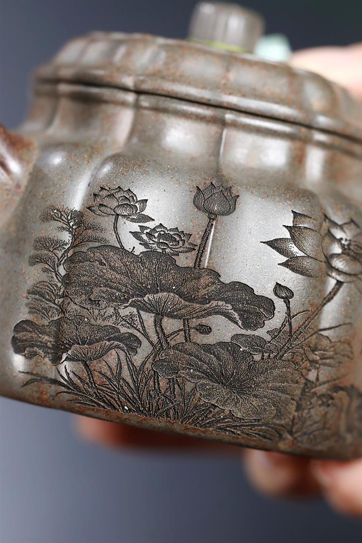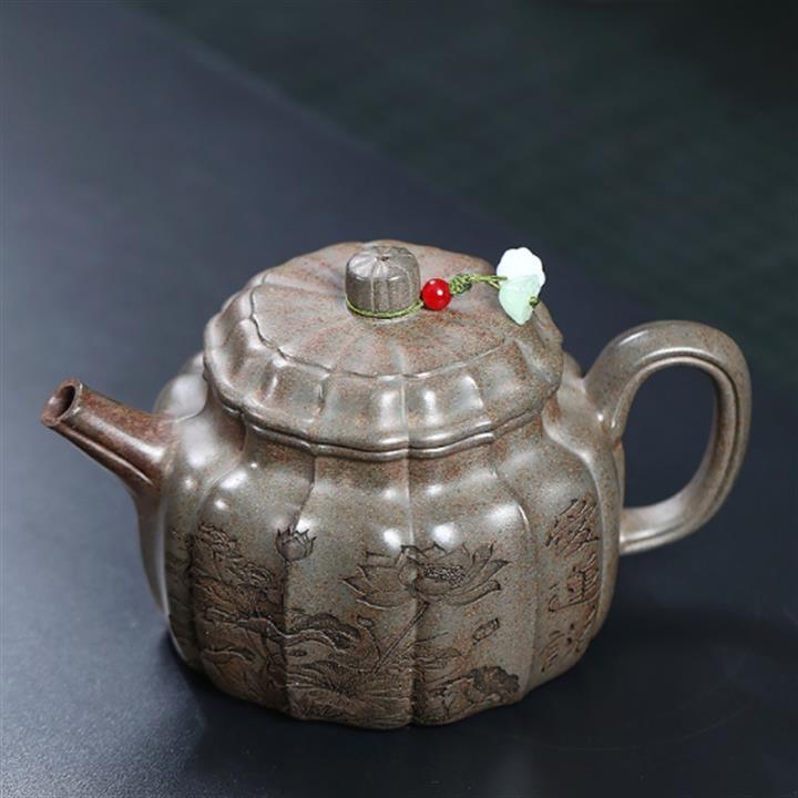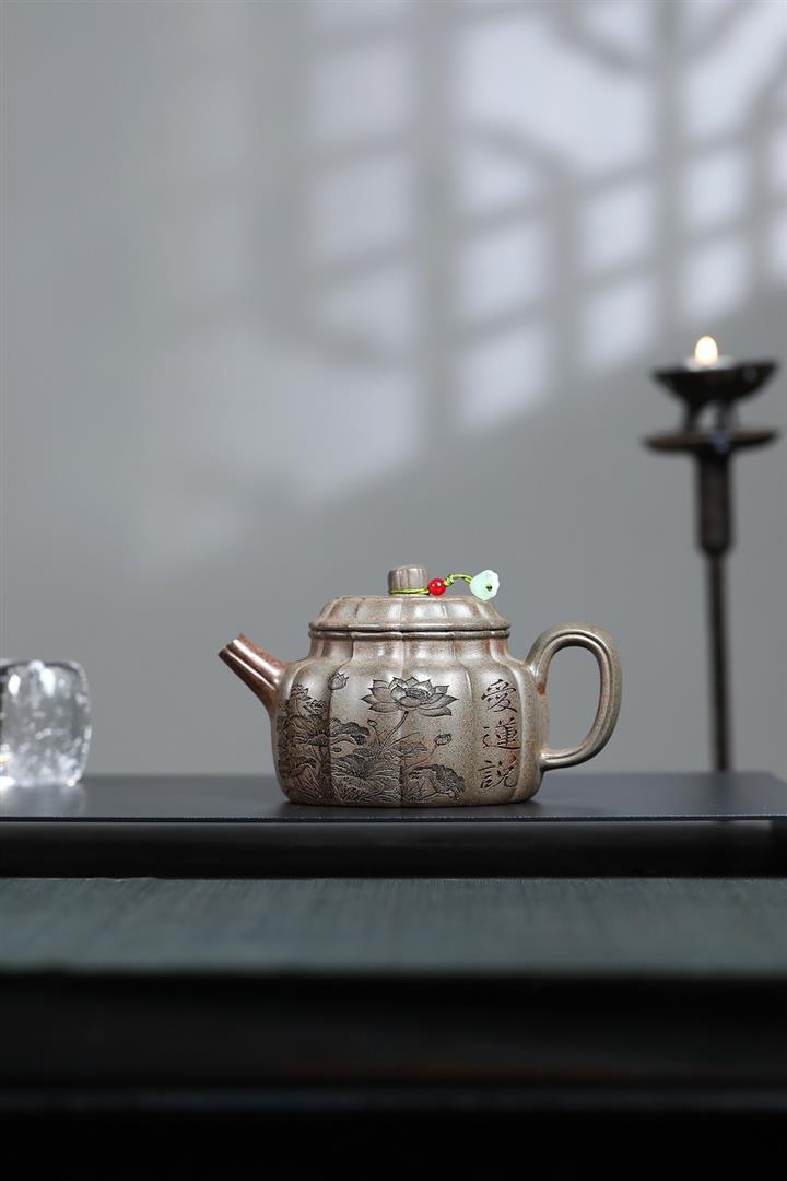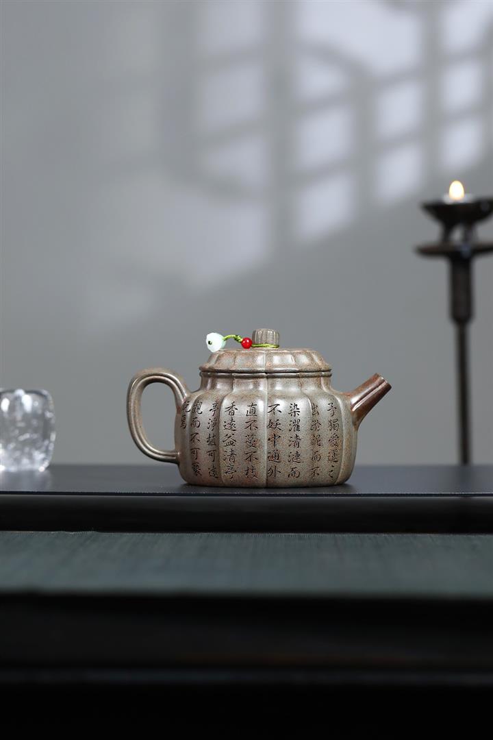 330CC原礦沈香泥柴燒筋紋蓮華茶壺POT8644