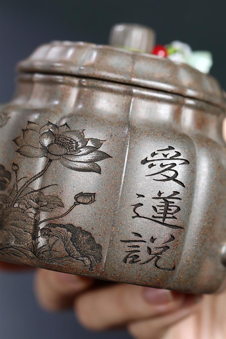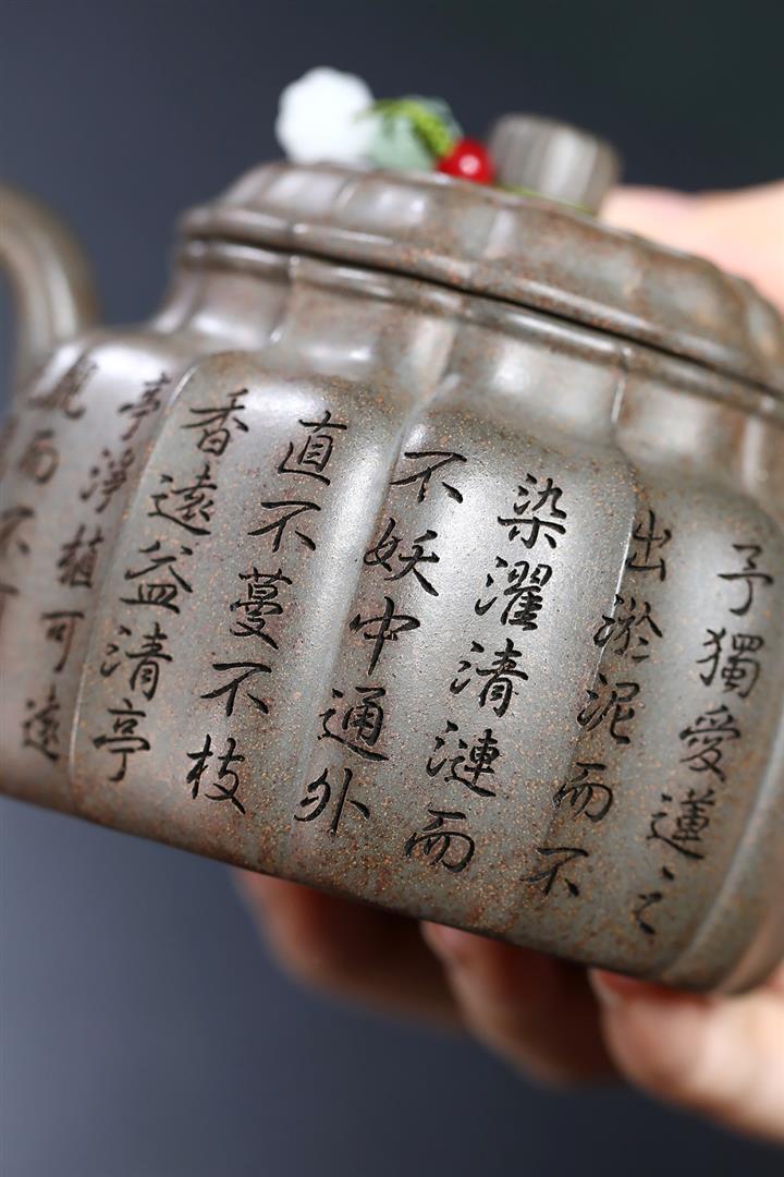 原礦紫泥梅花刻繪珠圓玉潤茶壺POT7397