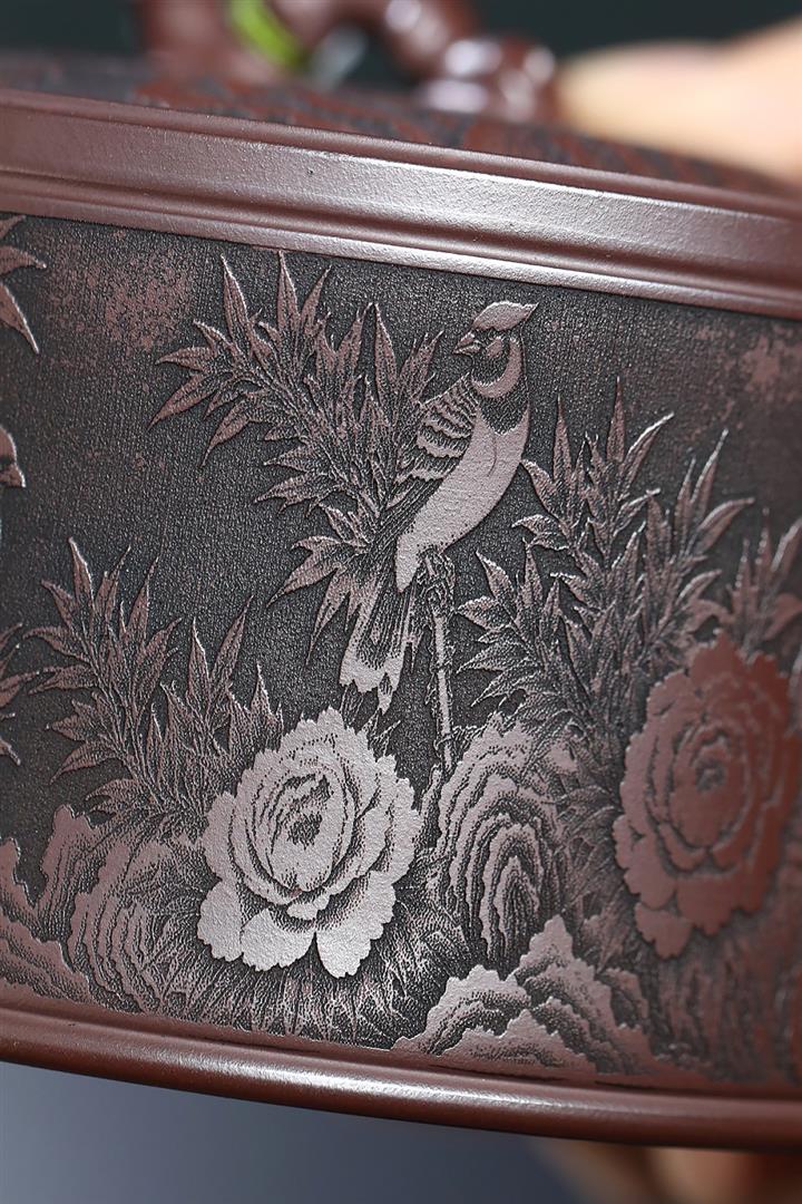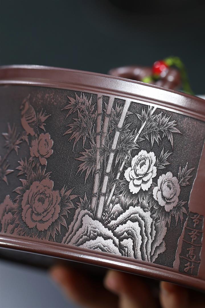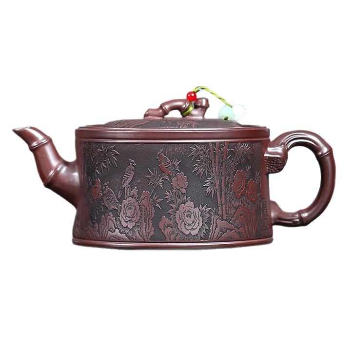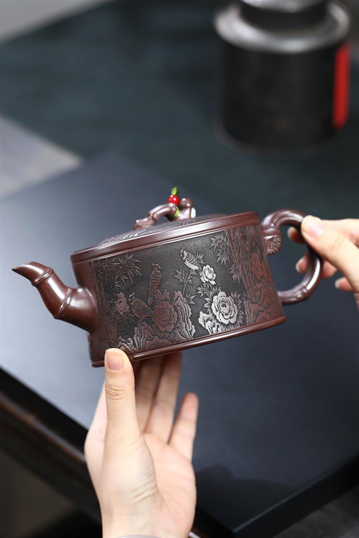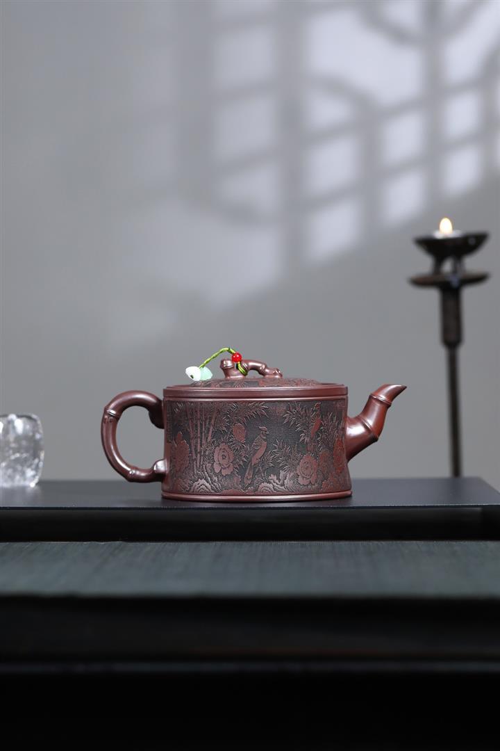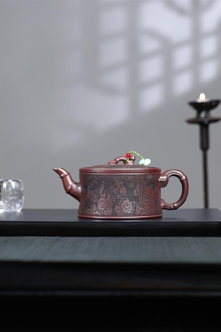 530cc原礦石紅泥春色滿園竹段茶壺POT8645