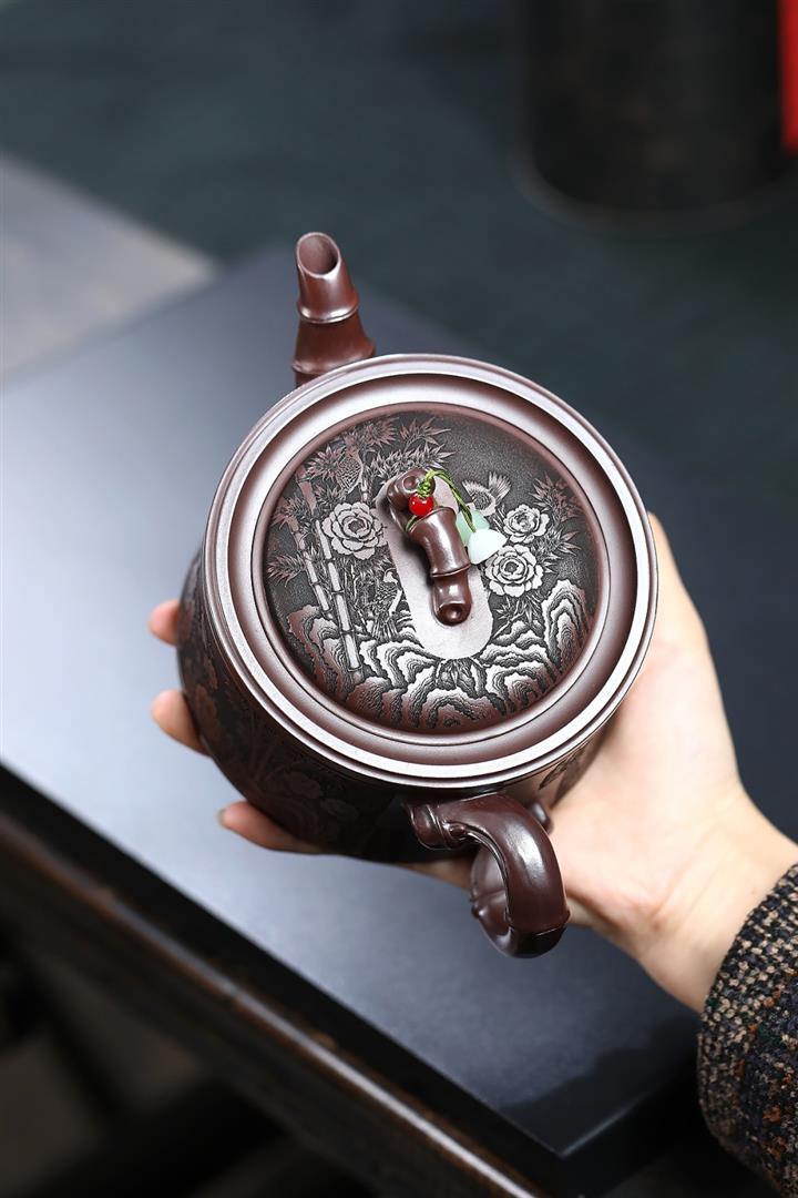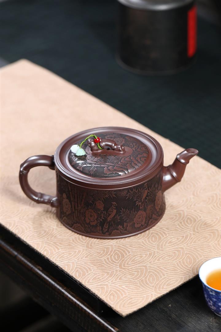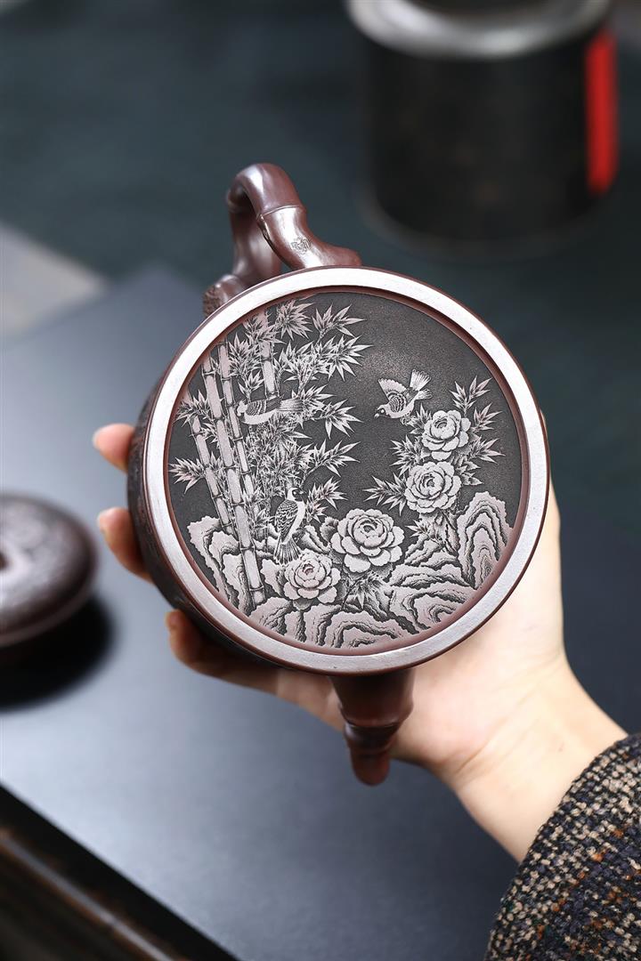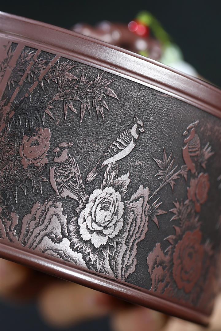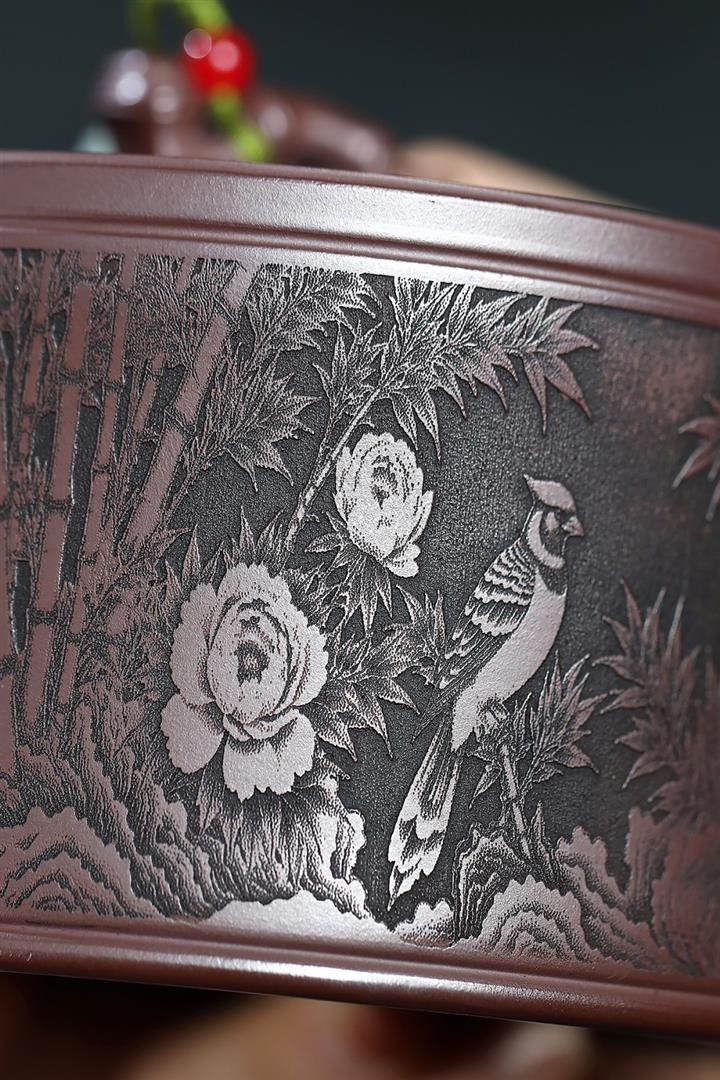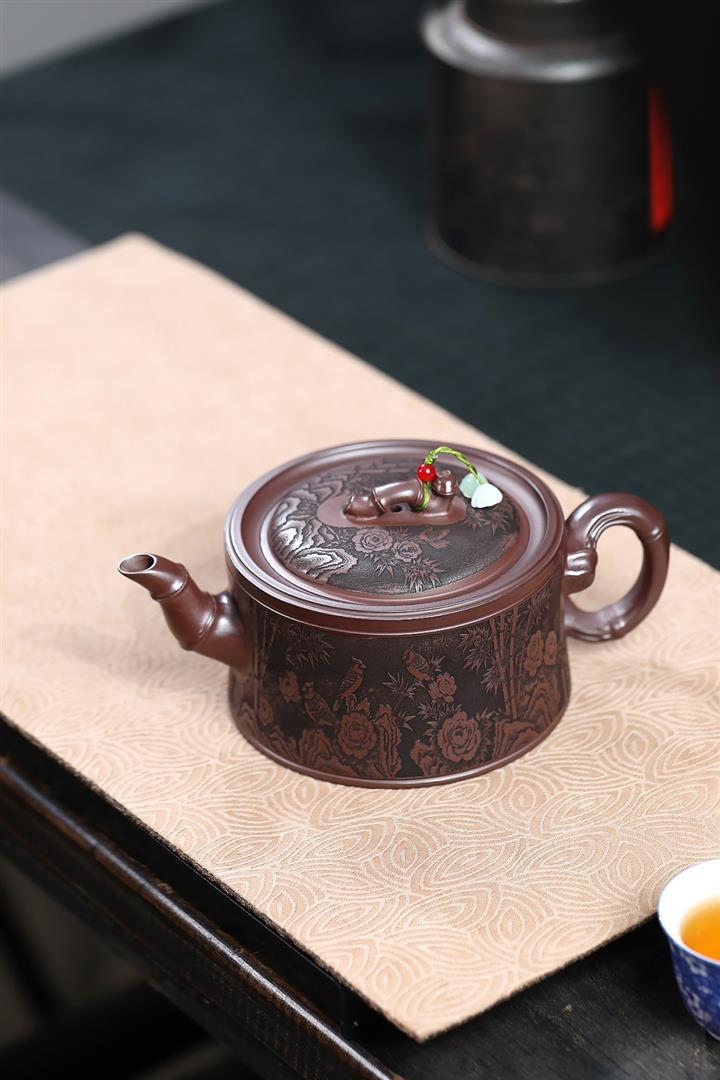 530cc原礦石紅泥春色滿園竹段茶壺POT8645