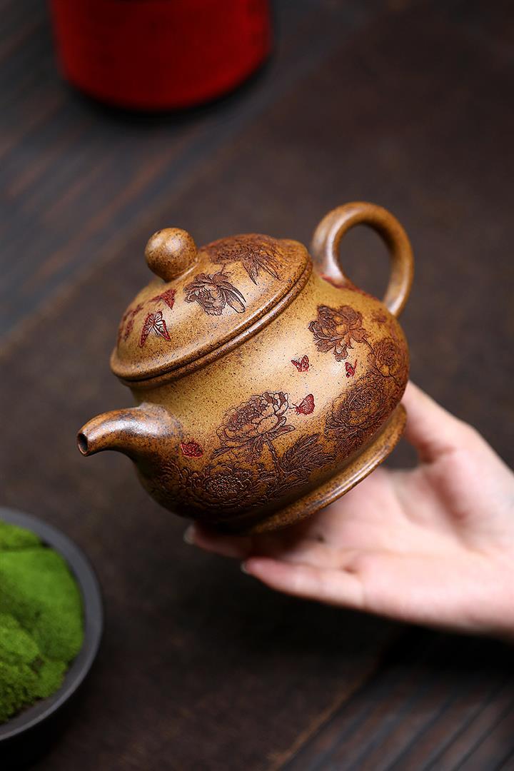 420cc原礦高溫段泥花開富貴潘壺茶壺POT8651