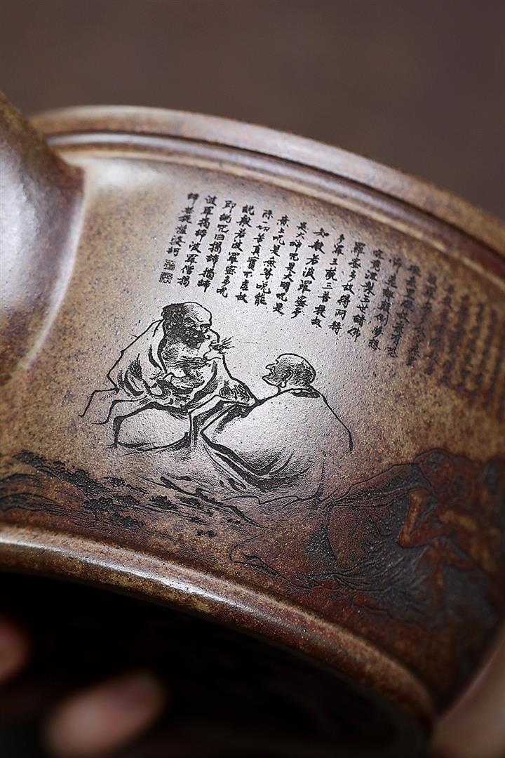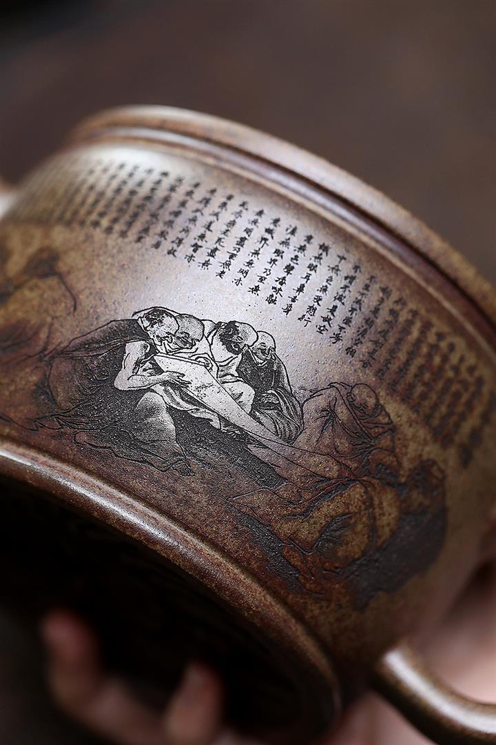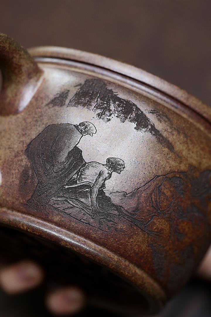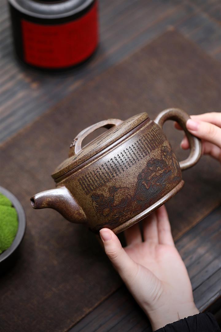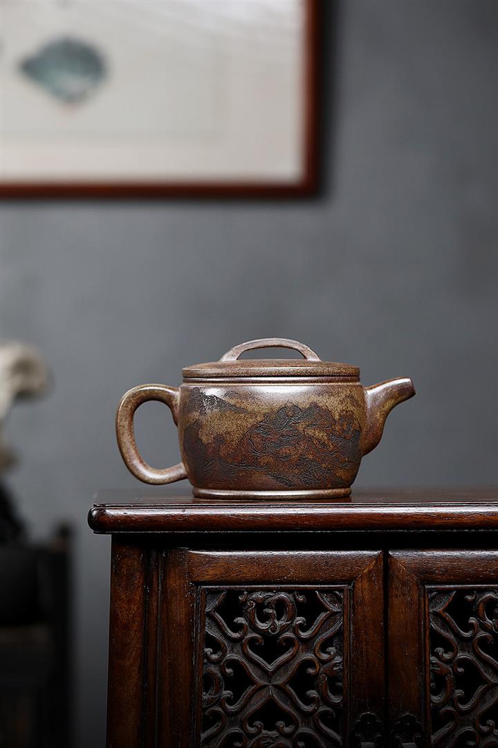 400cc原礦綠泥滿刻江山如畫壺POT7982