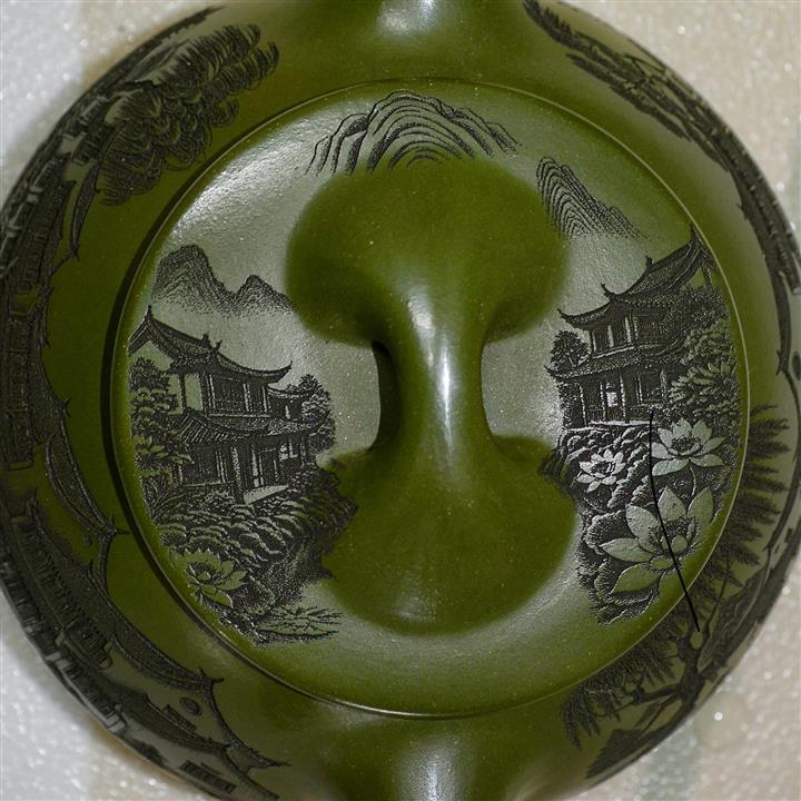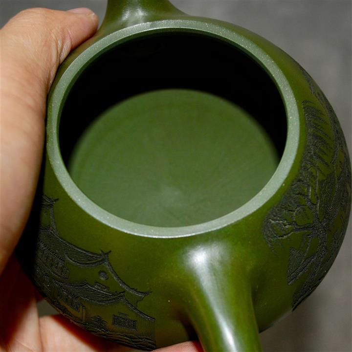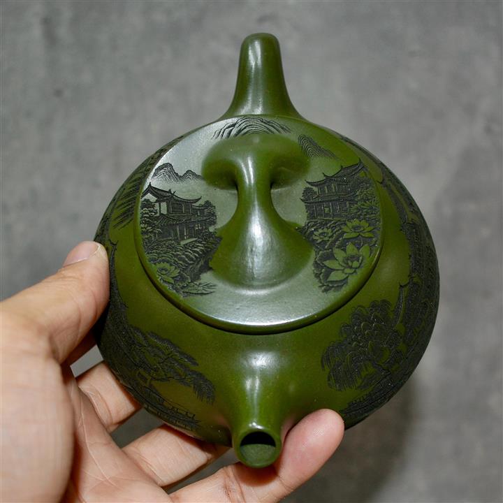 原礦墨綠泥手工蛟龍戲珠供春壺POT6674