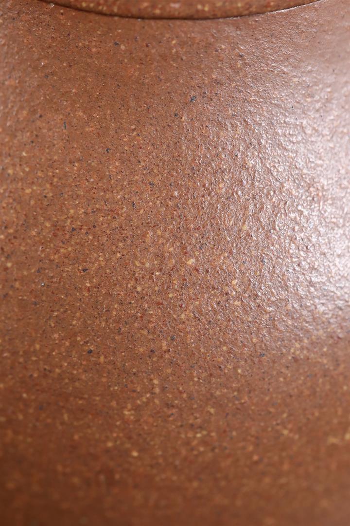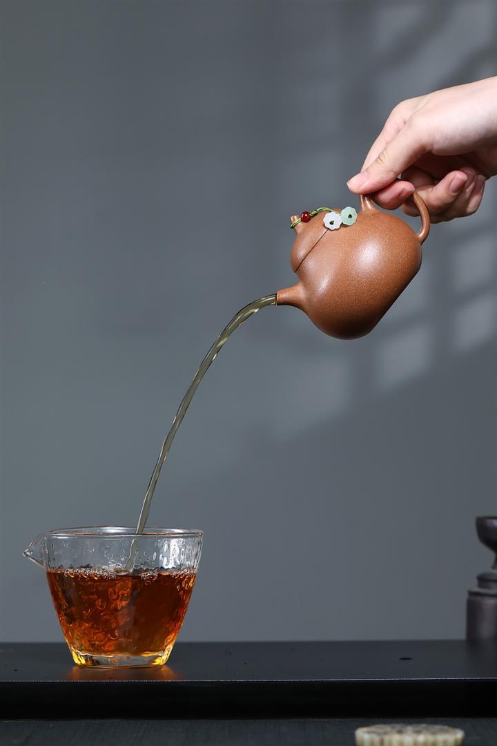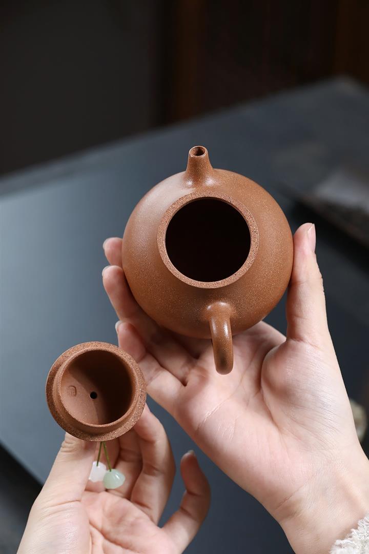 【泥料特點】砂土氣重,似淳實農民,日久使用,漸露鋒芒,養成變化,溫潤莊重。紫砂是壹種雙重氣孔結構的多孔性材質,氣孔微細,密度高。用紫砂壺沏茶,不失原味,且香不渙散,得茶之真香真味。紫砂使用越久,壺身色澤越發光亮照人,氣韻溫雅。紫砂壺長久使用器身會因撫摸擦拭,變得越發溫潤光澤。