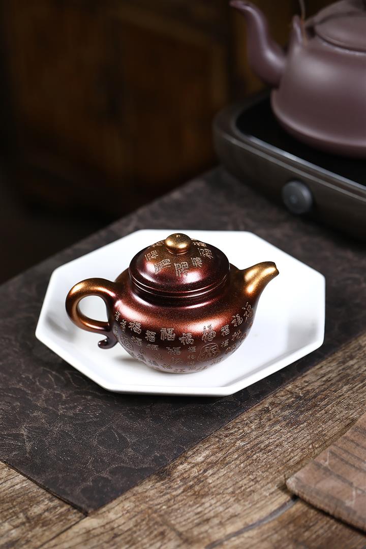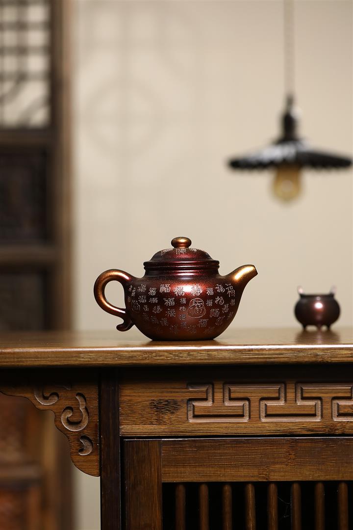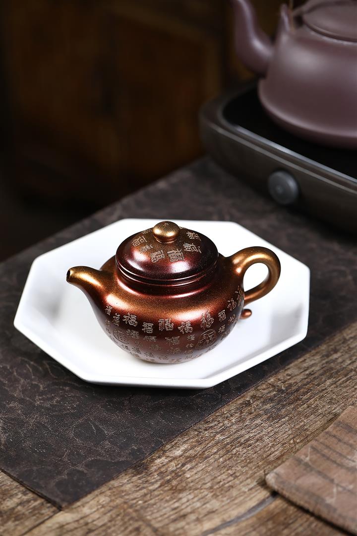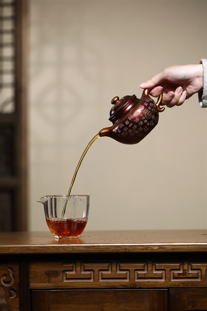 【泥料特點】砂土氣重,似淳實農民,日久使用,漸露鋒芒,養成變化,溫潤莊重。紫砂是壹種雙重氣孔結構的多孔性材質,氣孔微細,密度高。用紫砂壺沏茶,不失原味,且香不渙散,得茶之真香真味。紫砂使用越久,壺身色澤越發光亮照人,氣韻溫雅。紫砂壺長久使用器身會因撫摸擦拭,變得越發溫潤光澤。