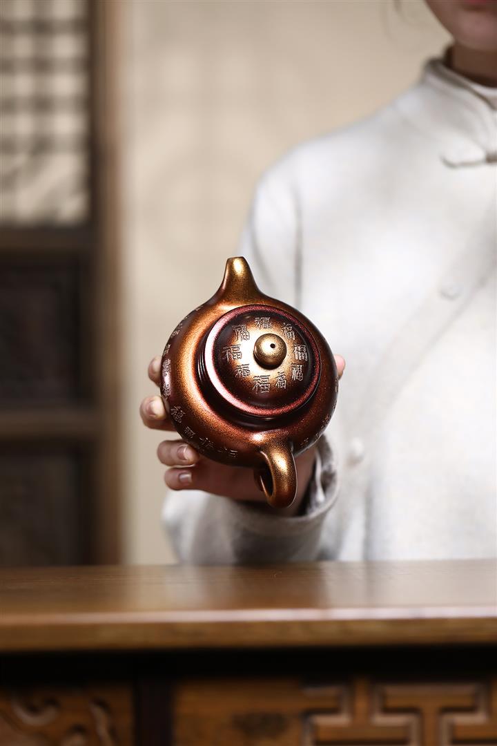 【作品介紹】此款壺形線條流暢,壺把,壺嘴,壺身壹氣呵成栩栩如生,是收藏把玩的好壺,泥料色澤古樸典雅,日久使用,漸露鋒芒,養成變化快,溫潤莊重,用其泡茶,使用的年代久,壺身就溫潤,泡出來的茶湯也就醇郁芳馨。