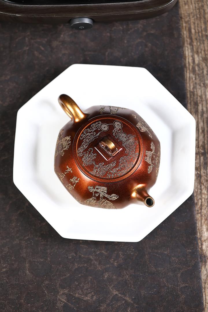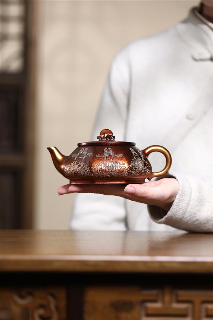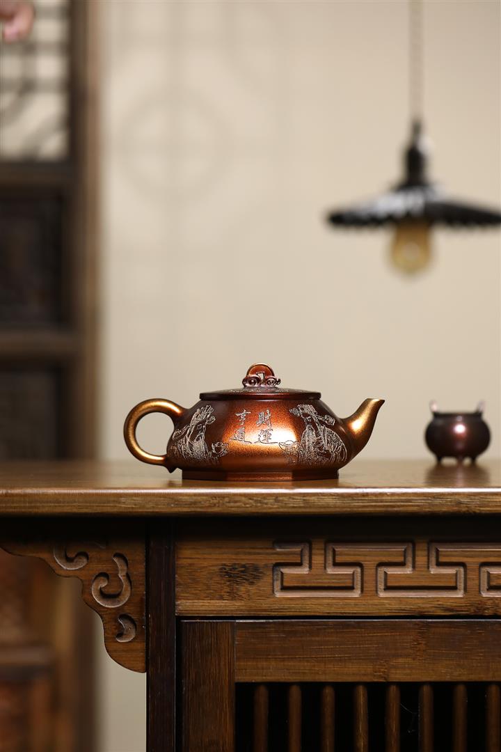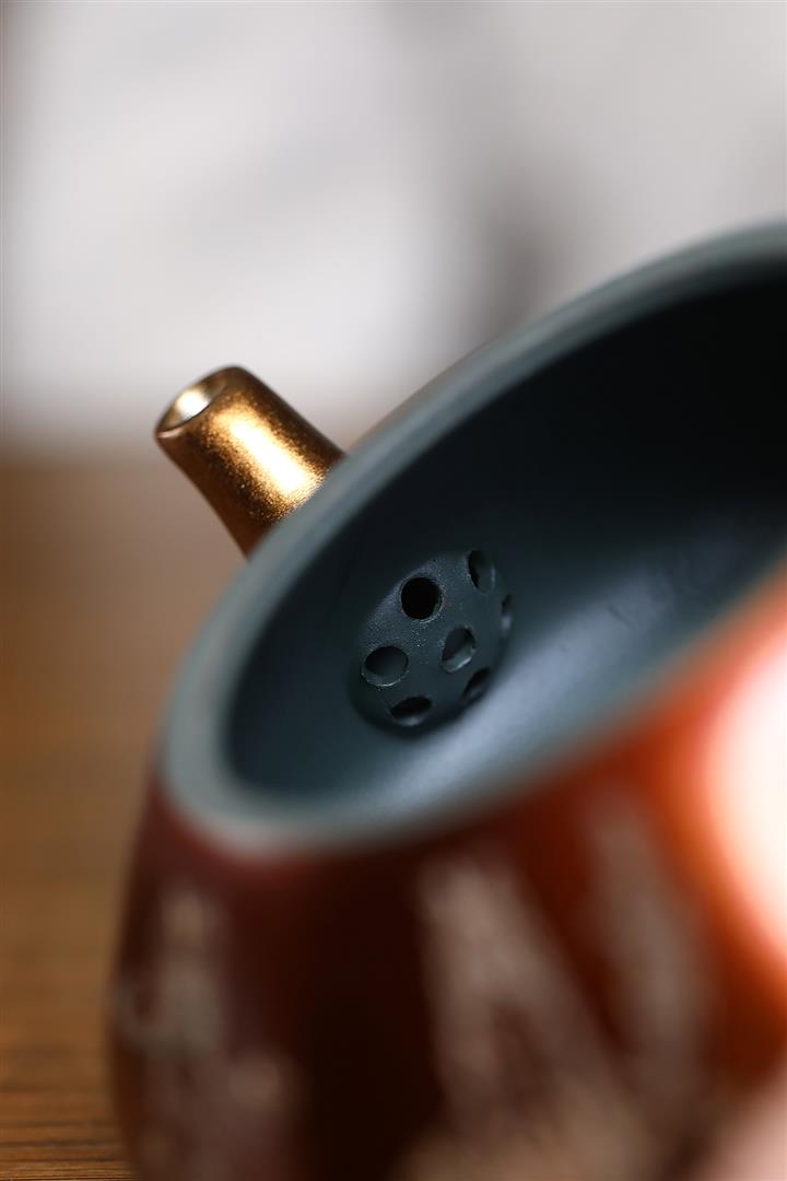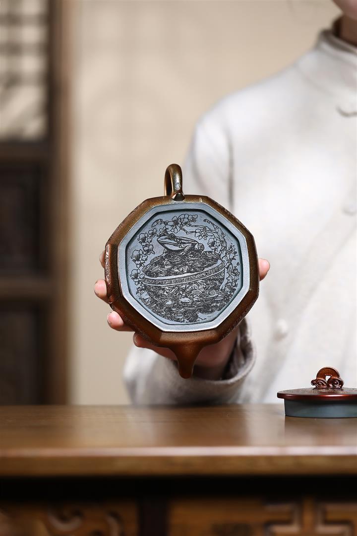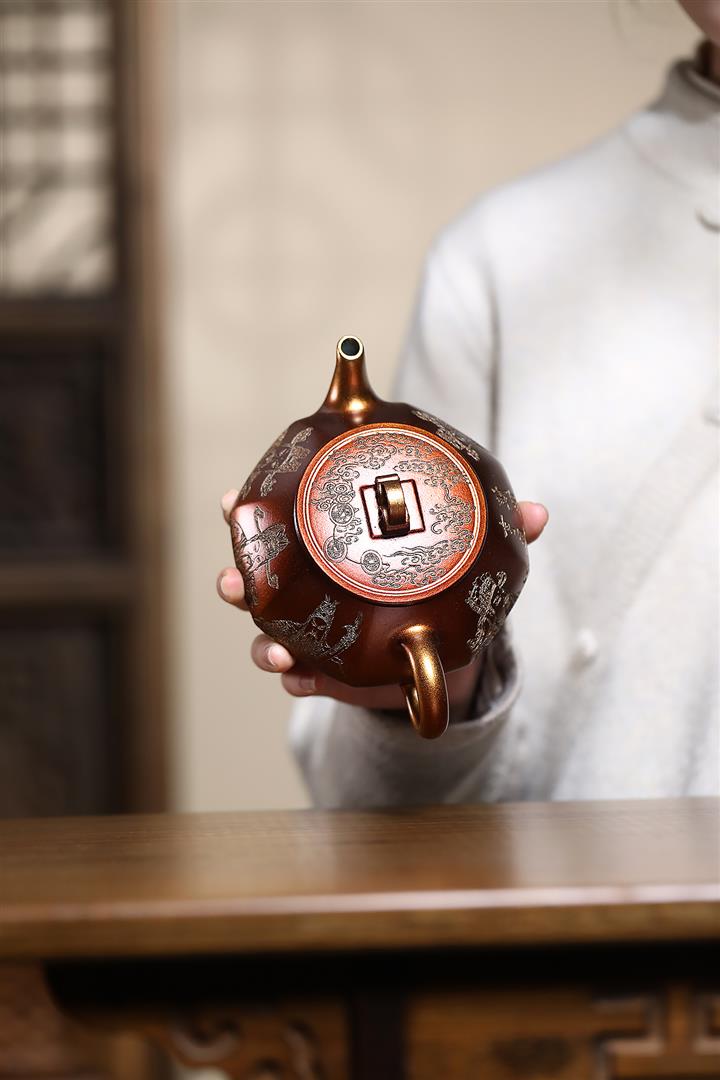 朱泥捂灰金龜換酒手工描金紫砂壺POT6500