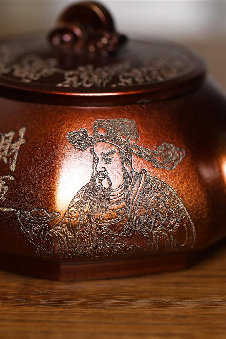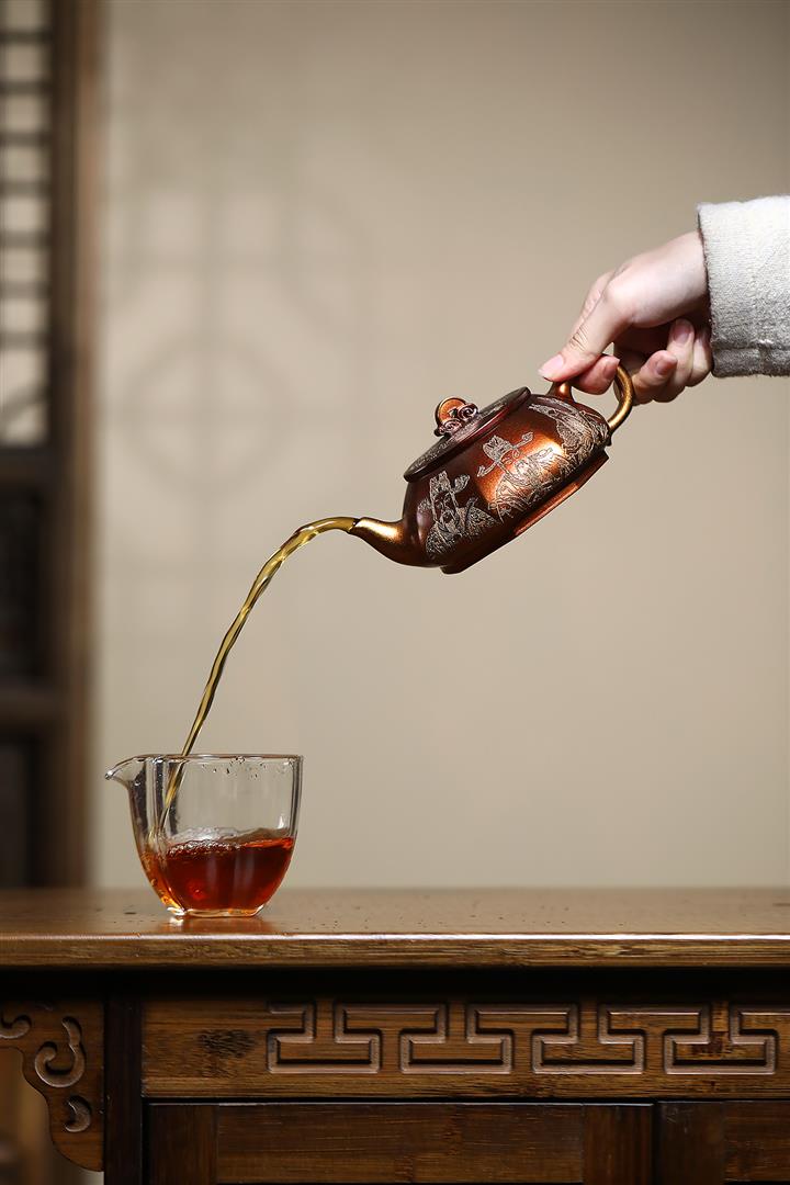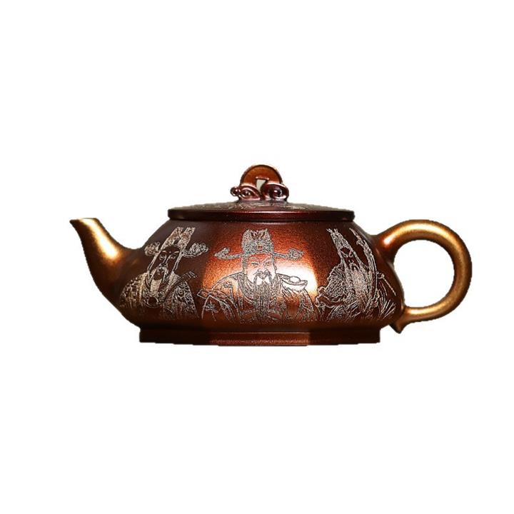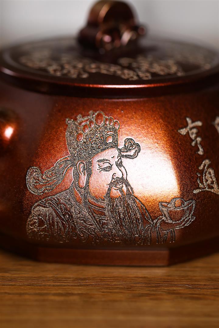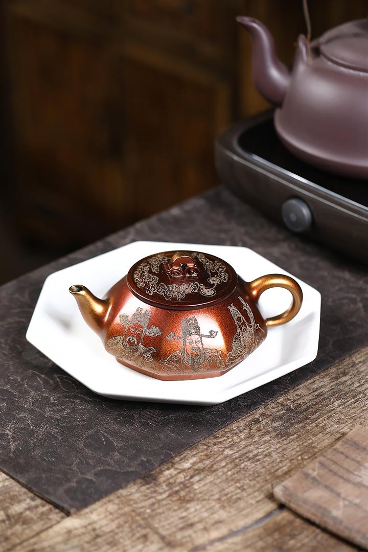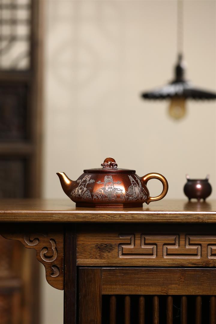 朱泥捂灰金龜換酒手工描金紫砂壺POT6500