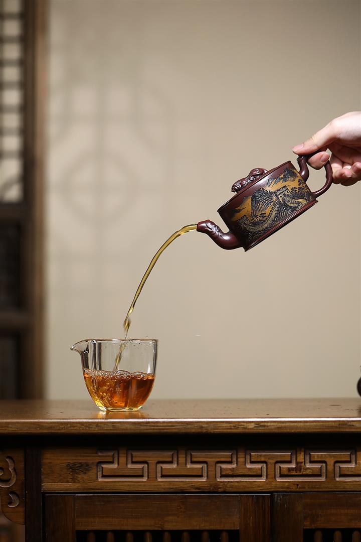 【泥料特點】砂土氣重,似淳實農民,日久使用,漸露鋒芒,養成變化,溫潤莊重。紫砂是壹種雙重氣孔結構的多孔性材質,氣孔微細,密度高。用紫砂壺沏茶,不失原味,且香不渙散,得茶之真香真味。紫砂使用越久,壺身色澤越發光亮照人,氣韻溫雅。紫砂壺長久使用器身會因撫摸擦拭,變得越發溫潤光澤。