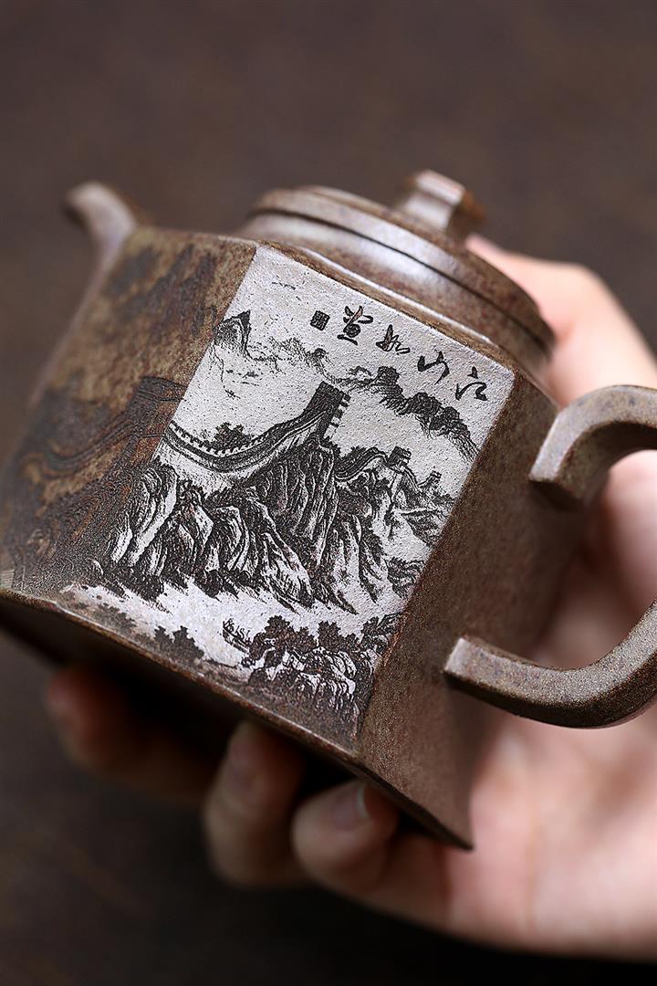 原礦貼花樹樁泡茶壺手工紫砂壺300cc pot3446