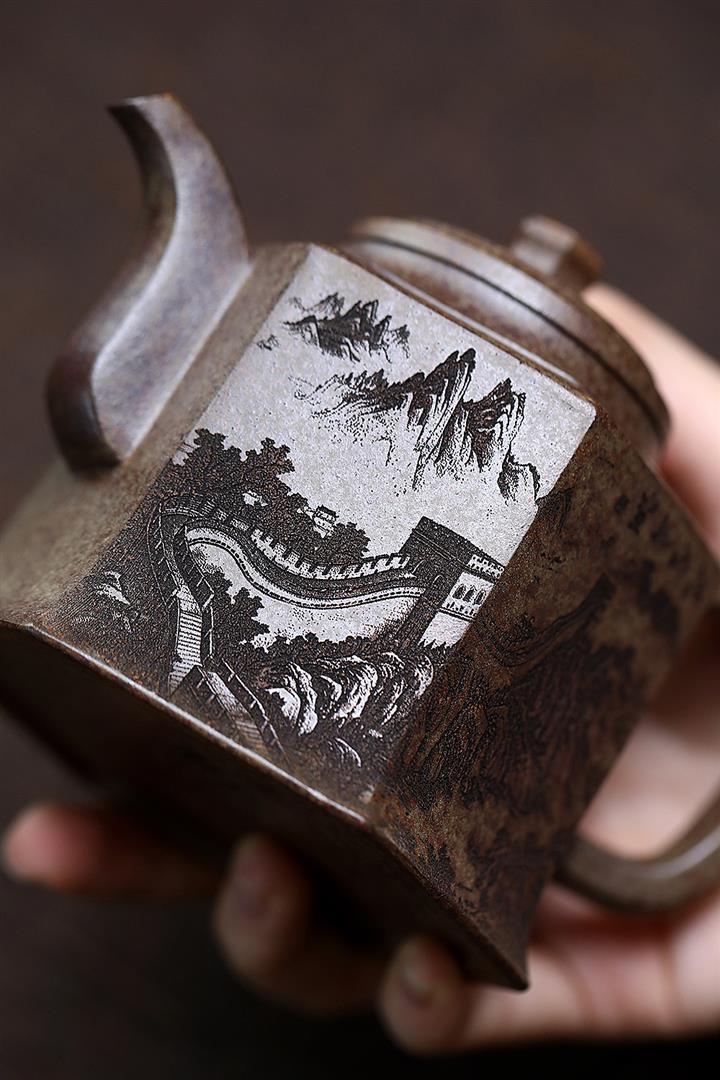 【作品介紹】此款壺形線條流暢,壺把,壺嘴,壺身壹氣呵成栩栩如生,是收藏把玩的好壺,泥料色澤古樸典雅,日久使用,漸露鋒芒,養成變化快,溫潤莊重,用其泡茶,使用的年代久,壺身就溫潤,泡出來的茶湯也就醇郁芳馨。