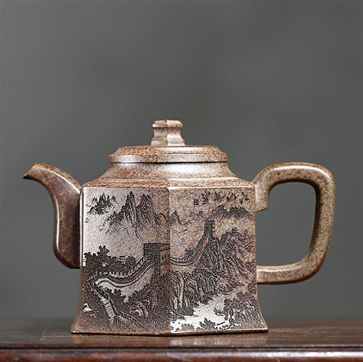 【泥料特點】砂土氣重,似淳實農民,日久使用,漸露鋒芒,養成變化,溫潤莊重。紫砂是壹種雙重氣孔結構的多孔性材質,氣孔微細,密度高。用紫砂壺沏茶,不失原味,且香不渙散,得茶之真香真味。紫砂使用越久,壺身色澤越發光亮照人,氣韻溫雅。紫砂壺長久使用器身會因撫摸擦拭,變得越發溫潤光澤。