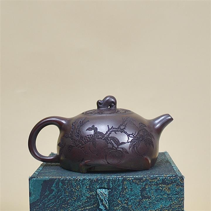 270cc原礦古紅泥壽桃半月泡茶壺POT8737