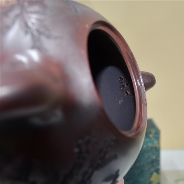 280cc原礦墨綠泥滿刻鯉躍荷塘茶壺POT8320