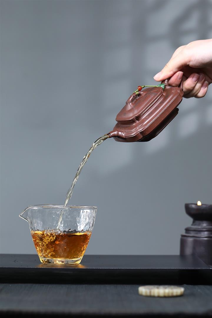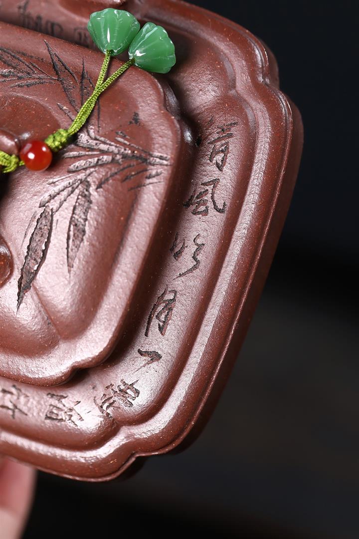【泥料特點】砂土氣重,似淳實農民,日久使用,漸露鋒芒,養成變化,溫潤莊重。紫砂是壹種雙重氣孔結構的多孔性材質,氣孔微細,密度高。用紫砂壺沏茶,不失原味,且香不渙散,得茶之真香真味。紫砂使用越久,壺身色澤越發光亮照人,氣韻溫雅。紫砂壺長久使用器身會因撫摸擦拭,變得越發溫潤光澤。