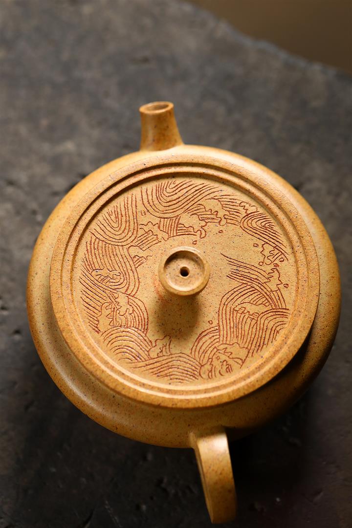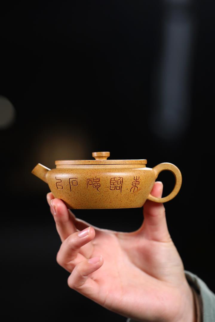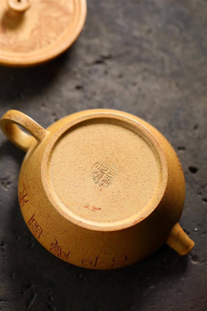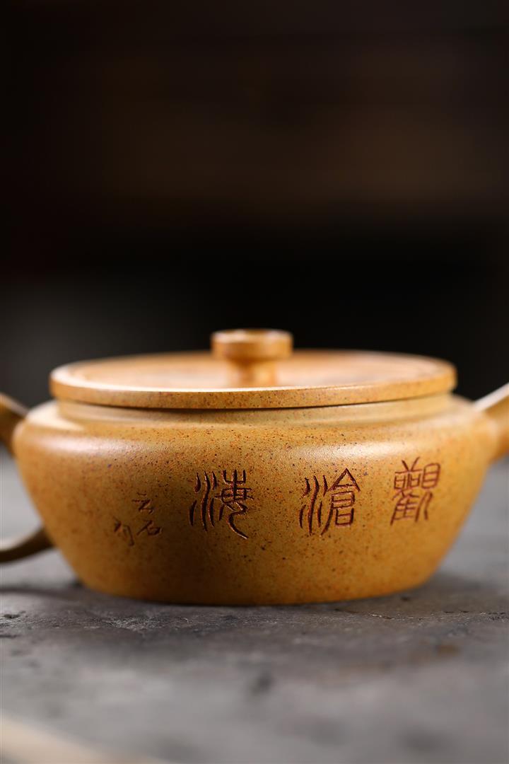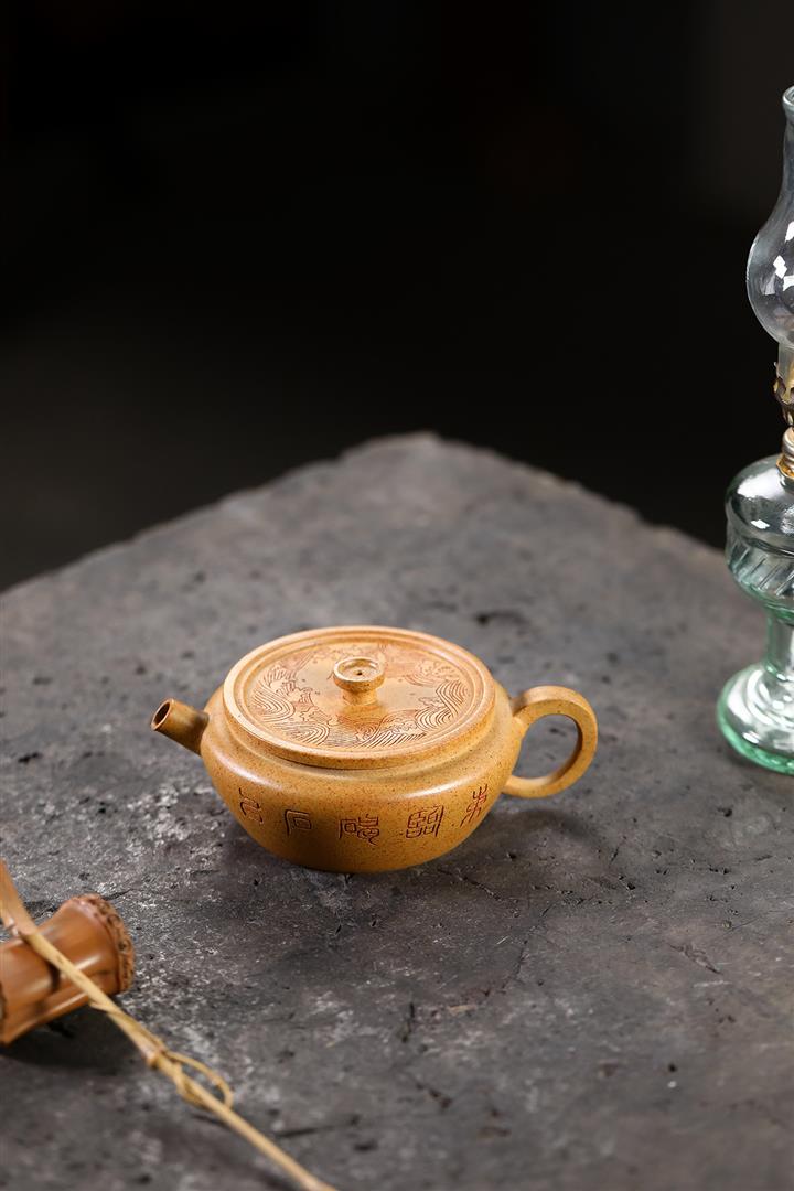 原礦紫砂君子蘭刻繪漢鐸茶壺POT7517