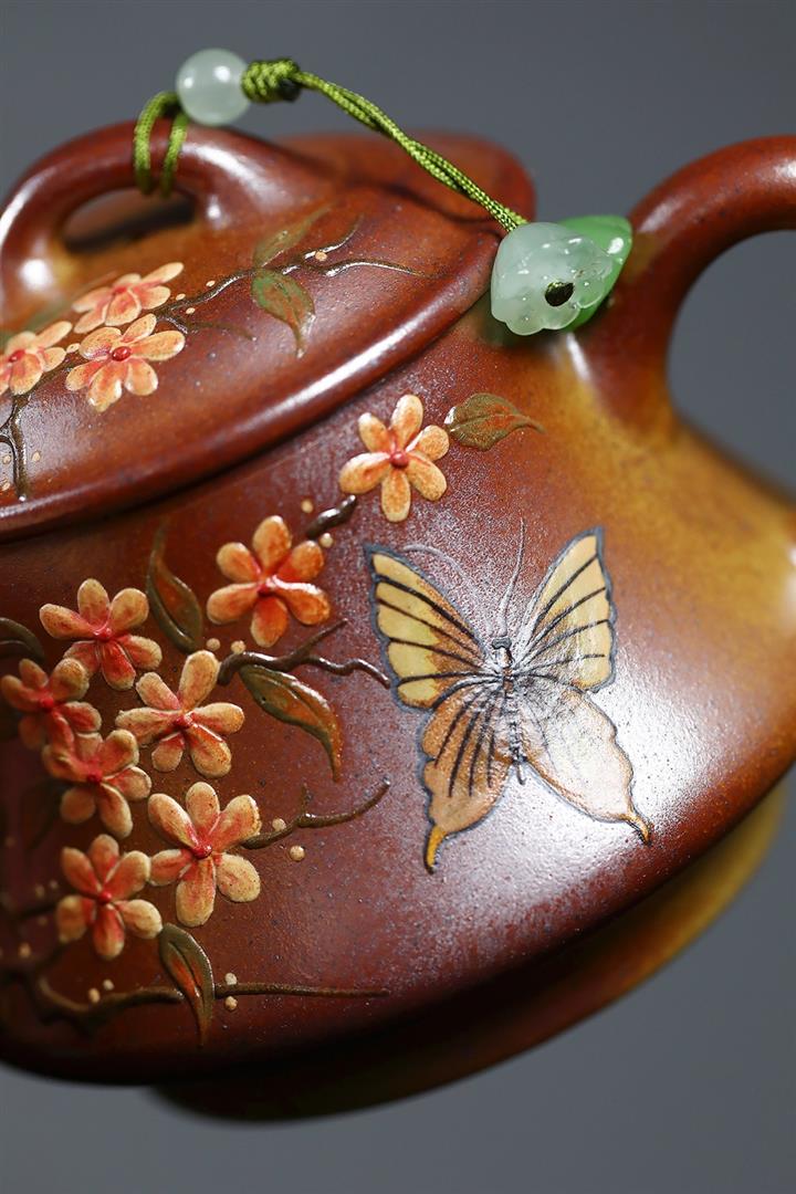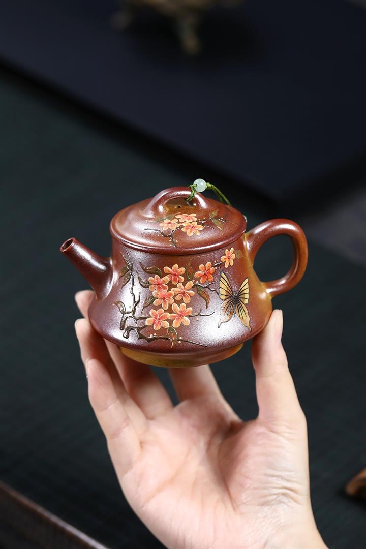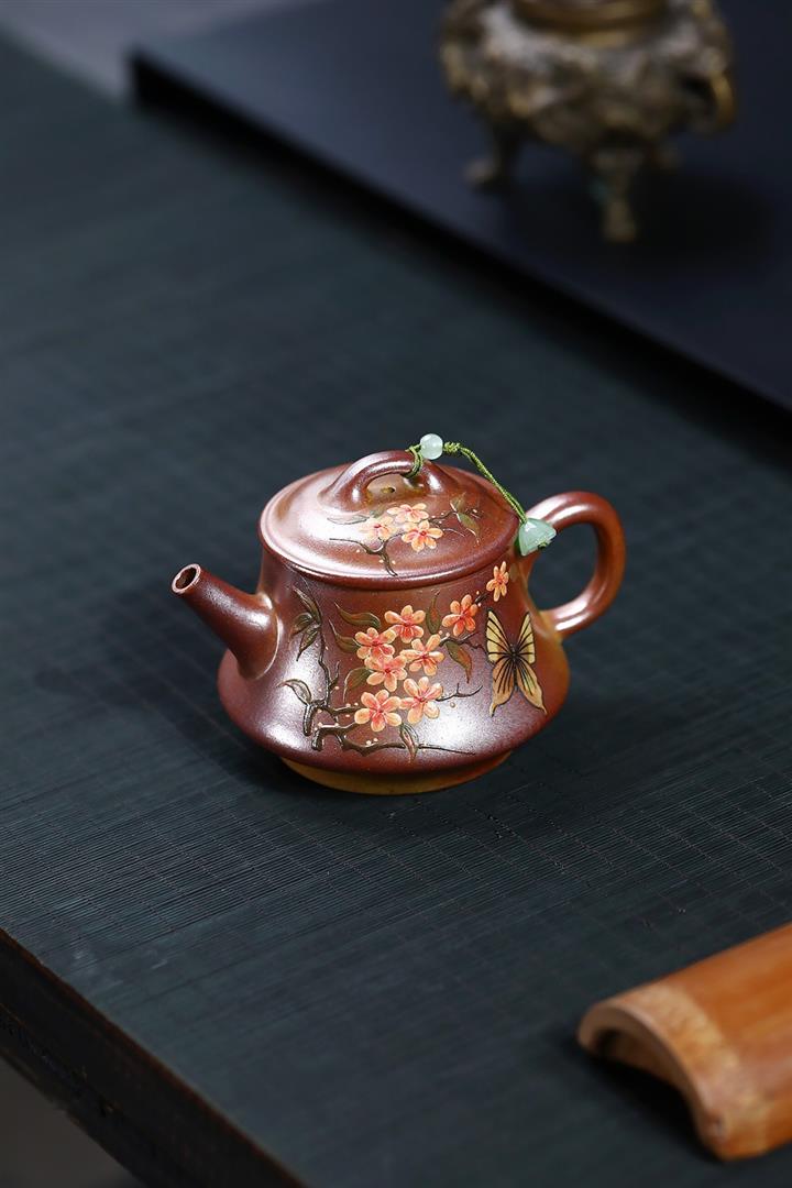 原礦大紅袍泥繪汲直紫砂壺POT4813