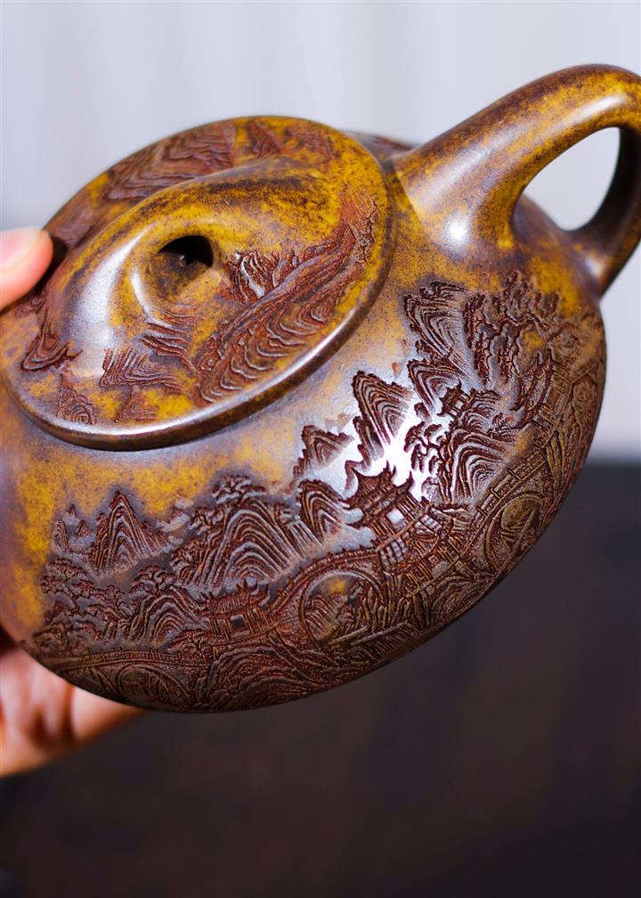 【作品介紹】此款壺形線條流暢,壺把,壺嘴,壺身壹氣呵成栩栩如生,是收藏把玩的好壺,泥料色澤古樸典雅,日久使用,漸露鋒芒,養成變化快,溫潤莊重,用其泡茶,使用的年代久,壺身就溫潤,泡出來的茶湯也就醇郁芳馨。
