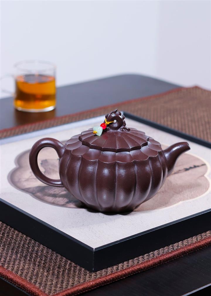 【泥料特點】砂土氣重,似淳實農民,日久使用,漸露鋒芒,養成變化,溫潤莊重。紫砂是壹種雙重氣孔結構的多孔性材質,氣孔微細,密度高。用紫砂壺沏茶,不失原味,且香不渙散,得茶之真香真味。紫砂使用越久,壺身色澤越發光亮照人,氣韻溫雅。紫砂壺長久使用器身會因撫摸擦拭,變得越發溫潤光澤。