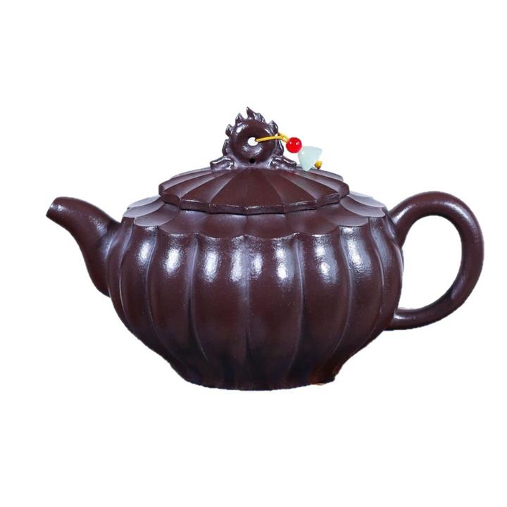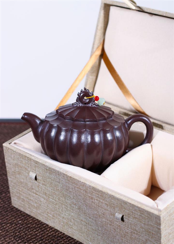 原礦紫朱泥手工製作滿刻心經西施壺POT4102