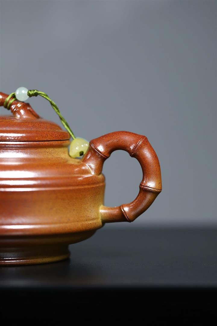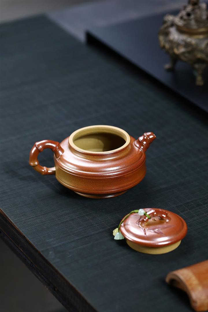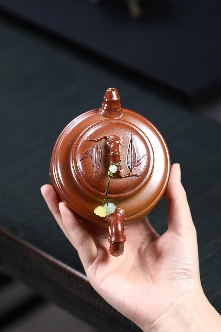 【泥料特點】砂土氣重,似淳實農民,日久使用,漸露鋒芒,養成變化,溫潤莊重。紫砂是壹種雙重氣孔結構的多孔性材質,氣孔微細,密度高。用紫砂壺沏茶,不失原味,且香不渙散,得茶之真香真味。紫砂使用越久,壺身色澤越發光亮照人,氣韻溫雅。紫砂壺長久使用器身會因撫摸擦拭,變得越發溫潤光澤。