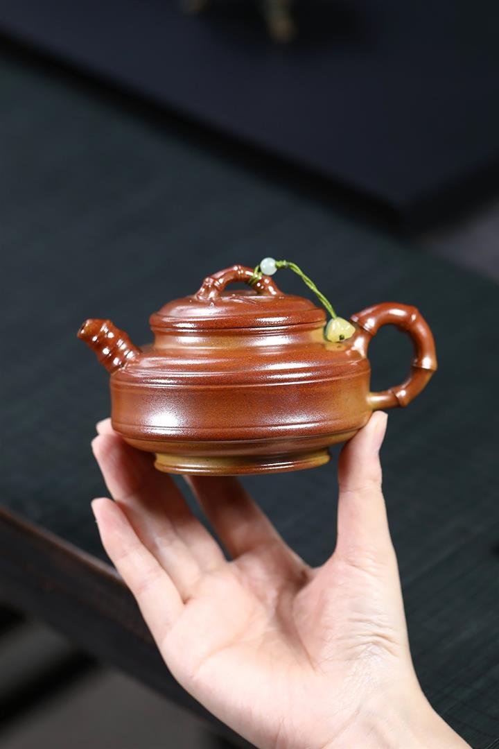 【作品介紹】此款壺形線條流暢,壺把,壺嘴,壺身壹氣呵成栩栩如生,是收藏把玩的好壺,泥料色澤古樸典雅,日久使用,漸露鋒芒,養成變化快,溫潤莊重,用其泡茶,使用的年代久,壺身就溫潤,泡出來的茶湯也就醇郁芳馨。