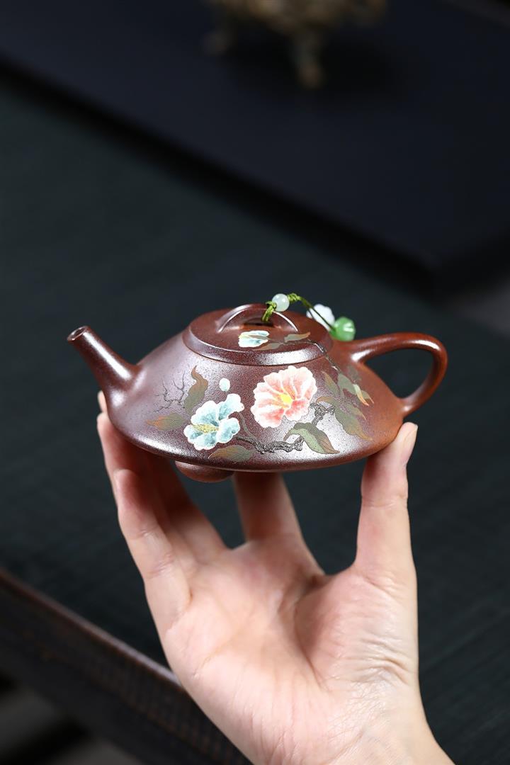 【泥料特點】砂土氣重,似淳實農民,日久使用,漸露鋒芒,養成變化,溫潤莊重。紫砂是壹種雙重氣孔結構的多孔性材質,氣孔微細,密度高。用紫砂壺沏茶,不失原味,且香不渙散,得茶之真香真味。紫砂使用越久,壺身色澤越發光亮照人,氣韻溫雅。紫砂壺長久使用器身會因撫摸擦拭,變得越發溫潤光澤。