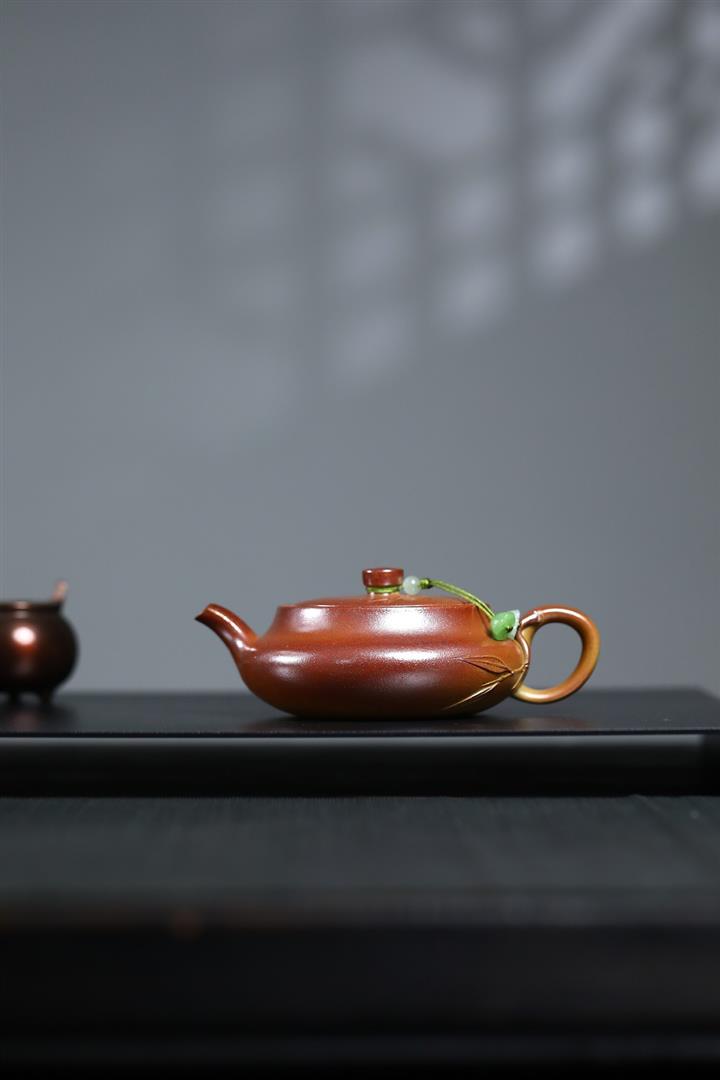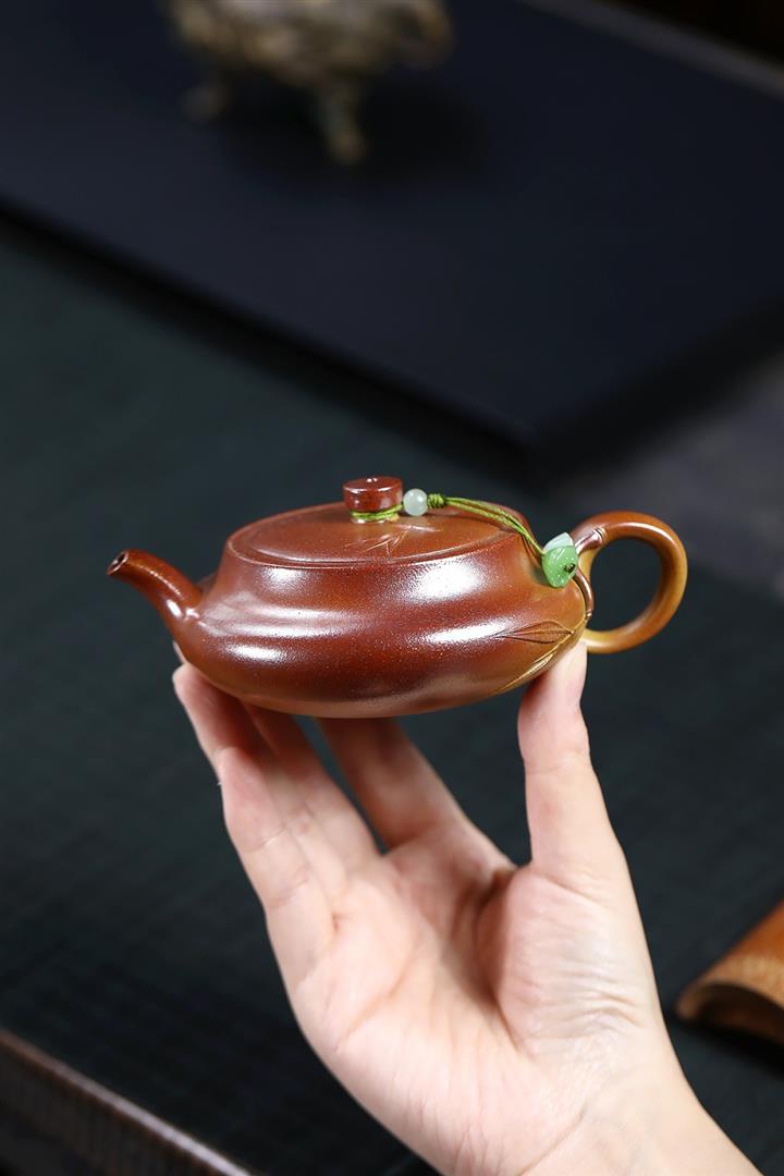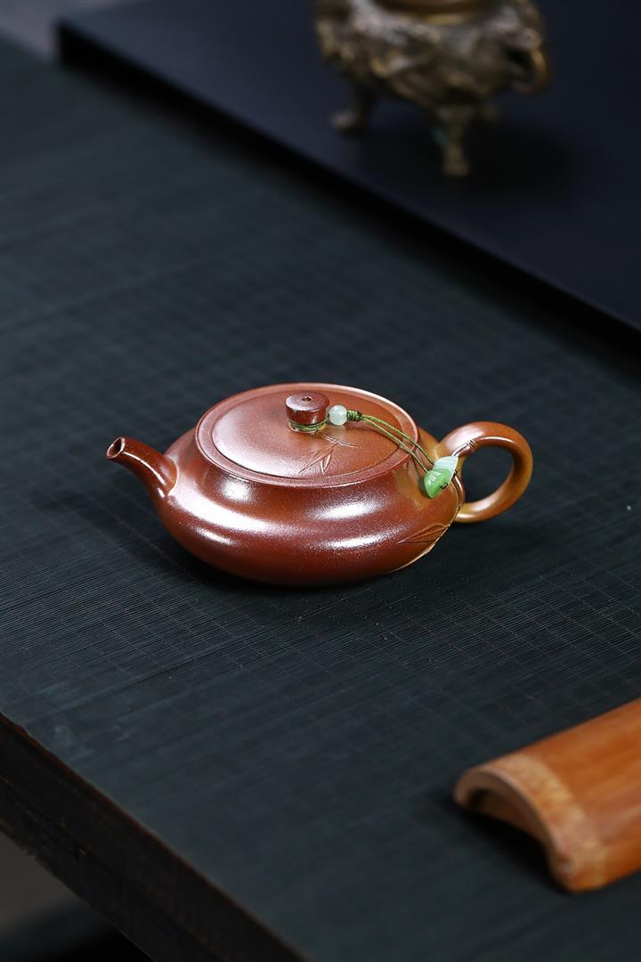 160cc原礦紅皮龍紫砂雙線竹鼓茶壺POT8318