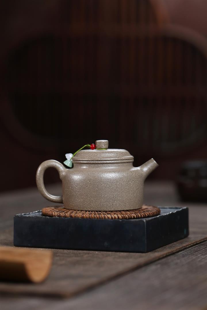 【泥料特點】砂土氣重,似淳實農民,日久使用,漸露鋒芒,養成變化,溫潤莊重。紫砂是壹種雙重氣孔結構的多孔性材質,氣孔微細,密度高。用紫砂壺沏茶,不失原味,且香不渙散,得茶之真香真味。紫砂使用越久,壺身色澤越發光亮照人,氣韻溫雅。紫砂壺長久使用器身會因撫摸擦拭,變得越發溫潤光澤。