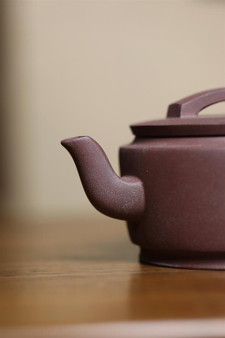 【作品介紹】此款壺形線條流暢,壺把,壺嘴,壺身壹氣呵成栩栩如生,是收藏把玩的好壺,泥料色澤古樸典雅,日久使用,漸露鋒芒,養成變化快,溫潤莊重,用其泡茶,使用的年代久,壺身就溫潤,泡出來的茶湯也就醇郁芳馨。