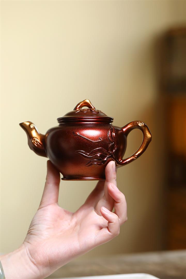 【作品介紹】此款壺形線條流暢,壺把,壺嘴,壺身壹氣呵成栩栩如生,是收藏把玩的好壺,泥料色澤古樸典雅,日久使用,漸露鋒芒,養成變化快,溫潤莊重,用其泡茶,使用的年代久,壺身就溫潤,泡出來的茶湯也就醇郁芳馨。