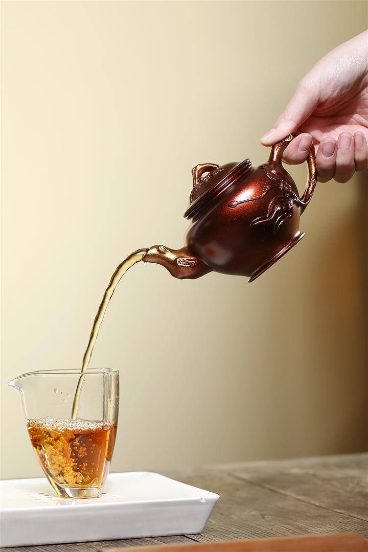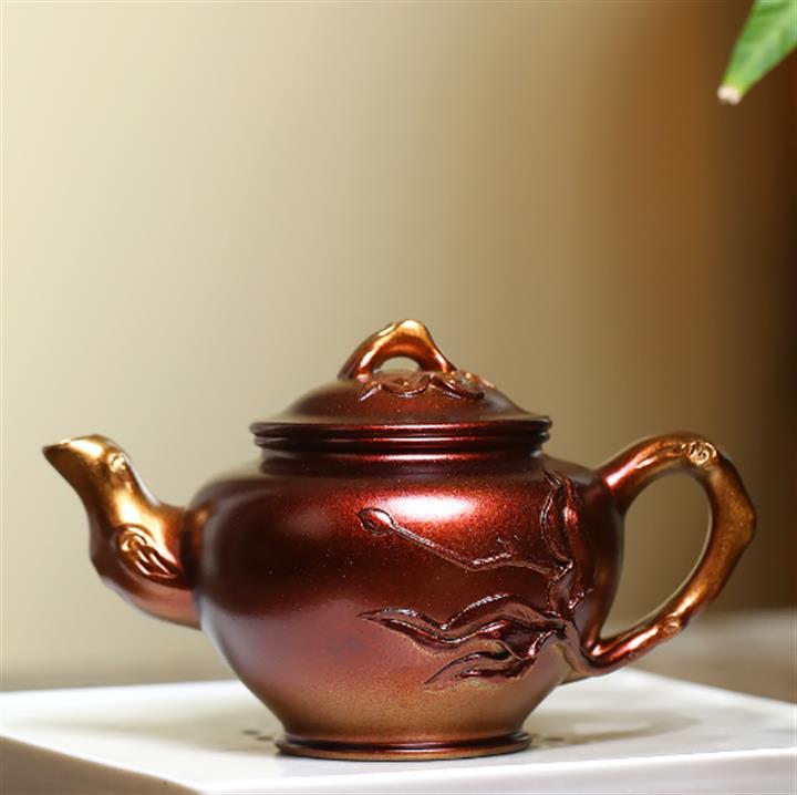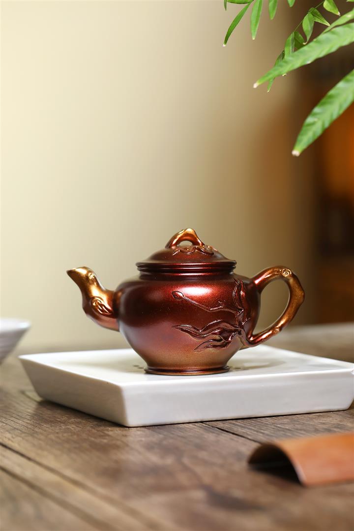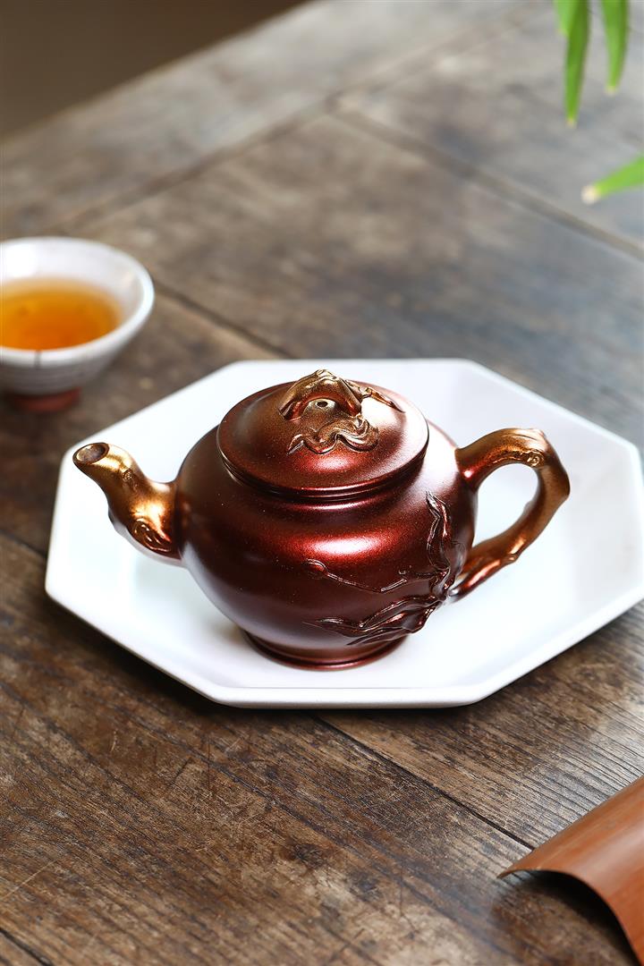 【泥料特點】砂土氣重,似淳實農民,日久使用,漸露鋒芒,養成變化,溫潤莊重。紫砂是壹種雙重氣孔結構的多孔性材質,氣孔微細,密度高。用紫砂壺沏茶,不失原味,且香不渙散,得茶之真香真味。紫砂使用越久,壺身色澤越發光亮照人,氣韻溫雅。紫砂壺長久使用器身會因撫摸擦拭,變得越發溫潤光澤。