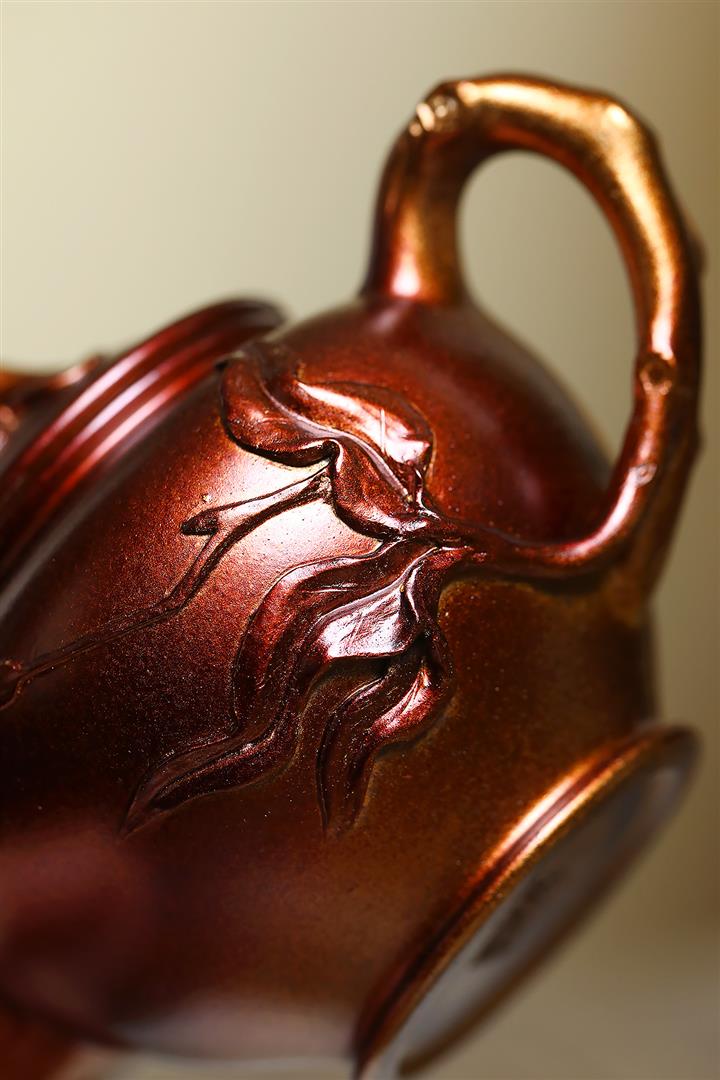 原礦陳腐紫泥刻繪雲龍德鐘壺POT6575