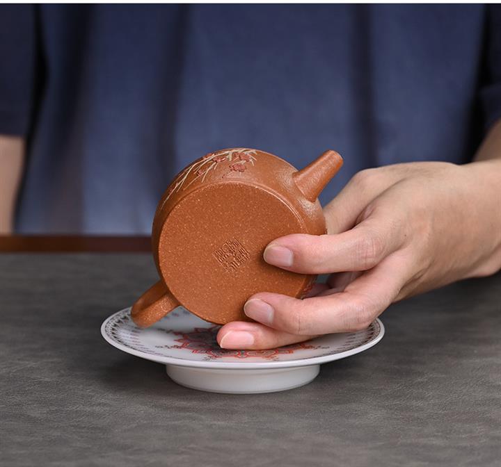 【泥料特點】砂土氣重,似淳實農民,日久使用,漸露鋒芒,養成變化,溫潤莊重。紫砂是壹種雙重氣孔結構的多孔性材質,氣孔微細,密度高。用紫砂壺沏茶,不失原味,且香不渙散,得茶之真香真味。紫砂使用越久,壺身色澤越發光亮照人,氣韻溫雅。紫砂壺長久使用器身會因撫摸擦拭,變得越發溫潤光澤。