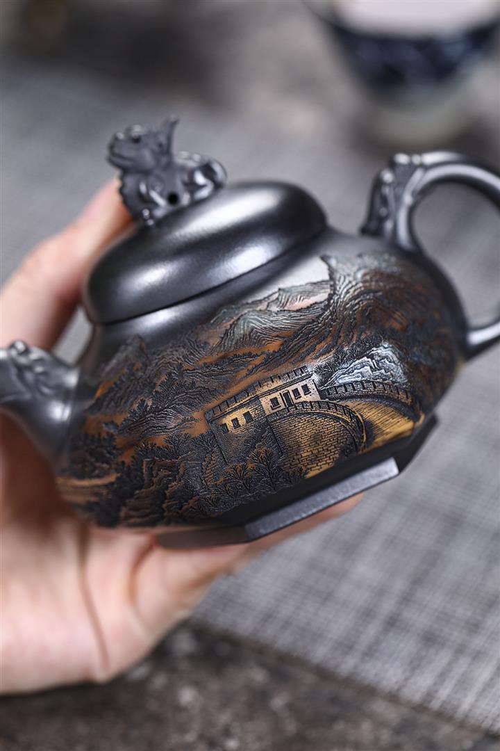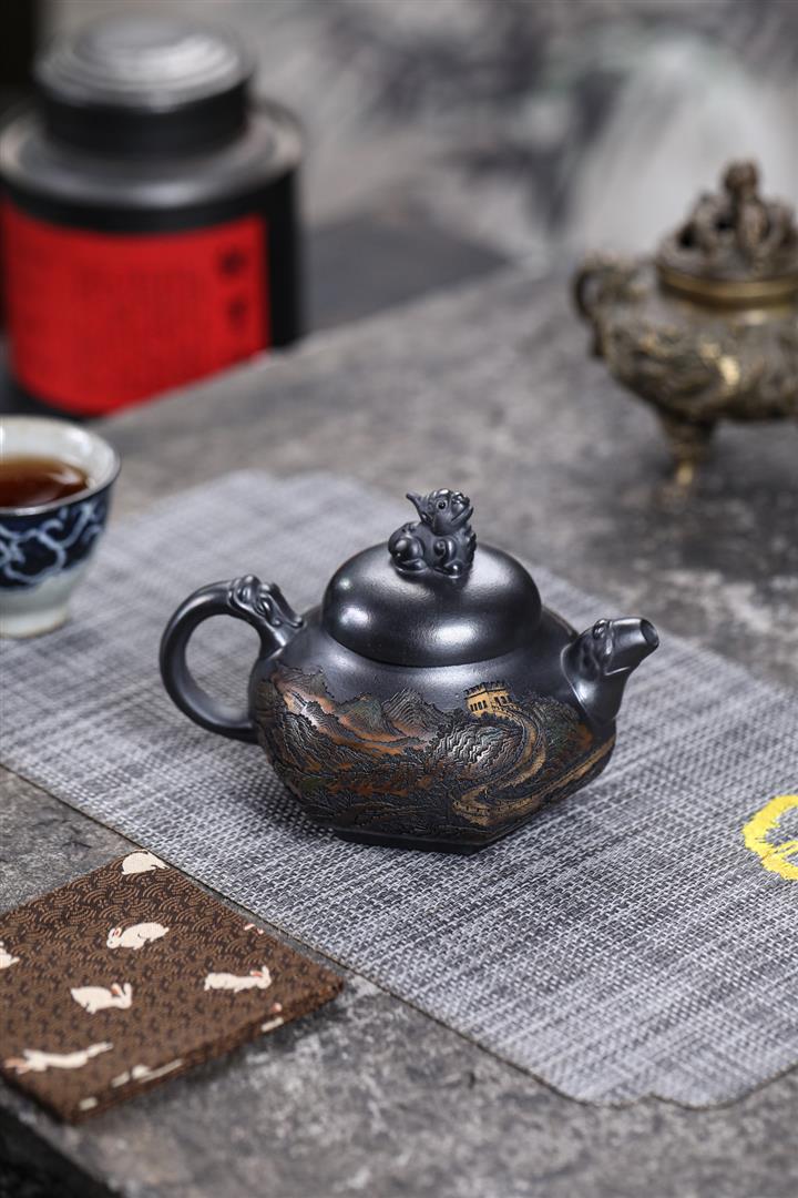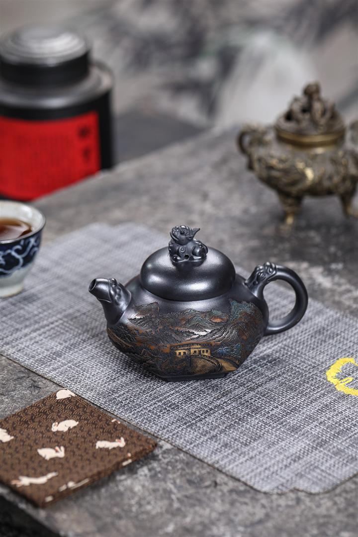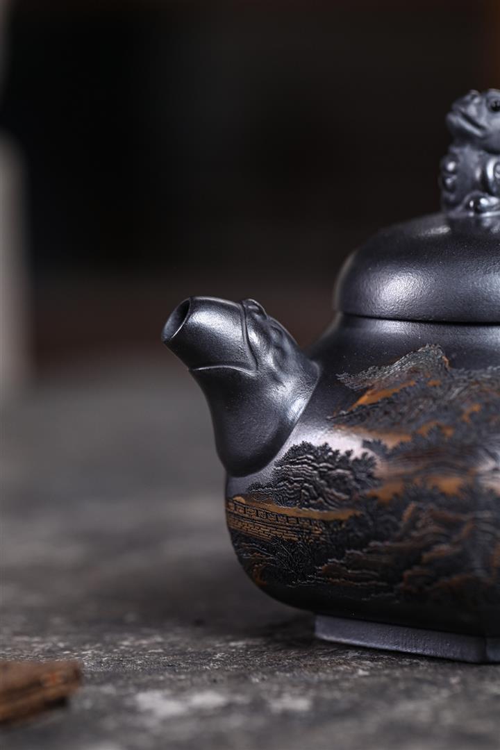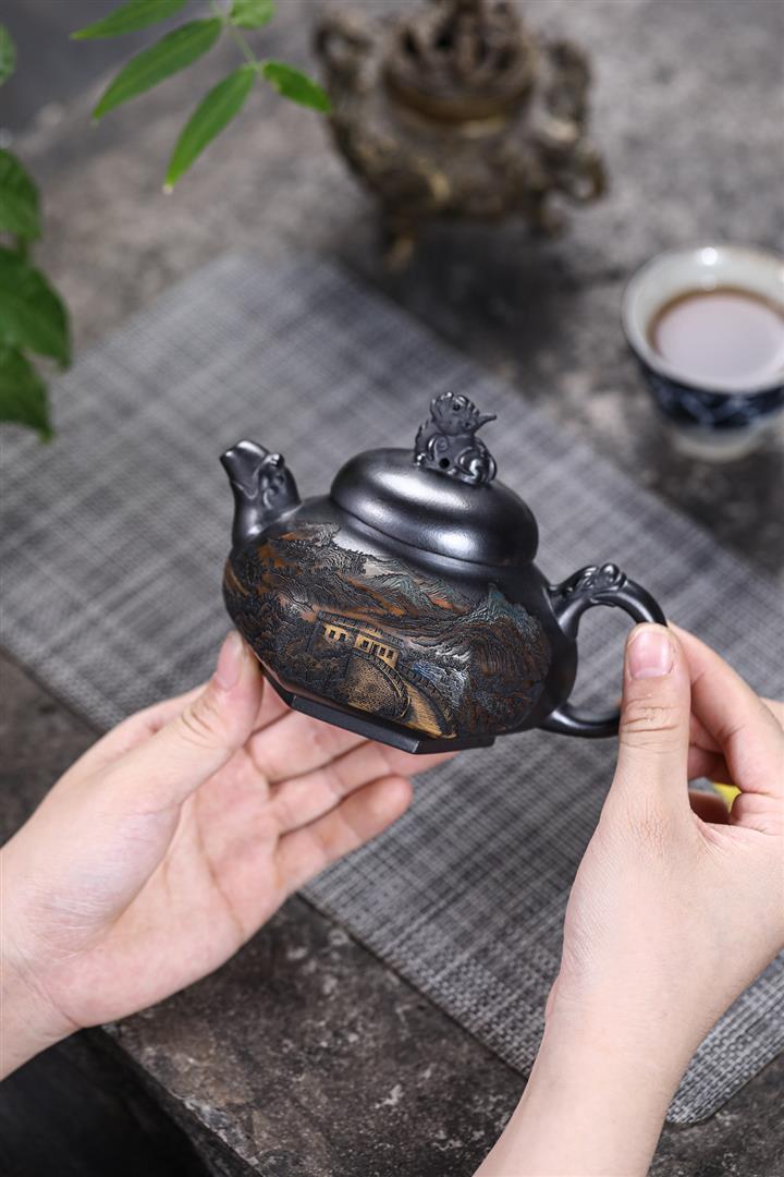 【作品介紹】此款壺形線條流暢,壺把,壺嘴,壺身壹氣呵成栩栩如生,是收藏把玩的好壺,泥料色澤古樸典雅,日久使用,漸露鋒芒,養成變化快,溫潤莊重,用其泡茶,使用的年代久,壺身就溫潤,泡出來的茶湯也就醇郁芳馨。