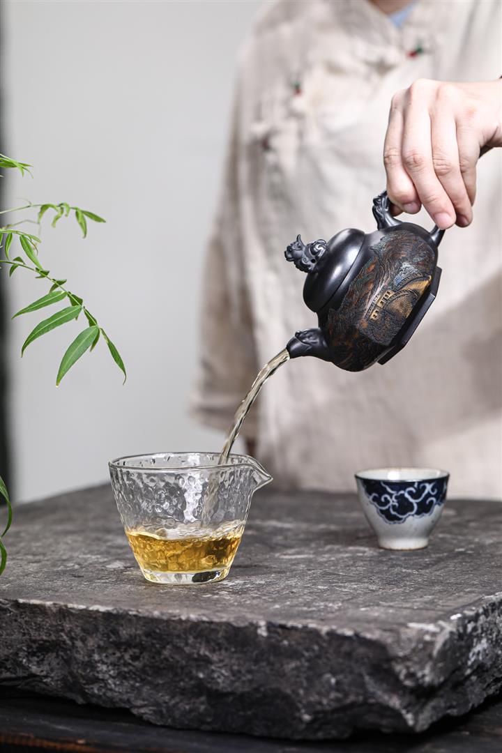 【泥料特點】砂土氣重,似淳實農民,日久使用,漸露鋒芒,養成變化,溫潤莊重。紫砂是壹種雙重氣孔結構的多孔性材質,氣孔微細,密度高。用紫砂壺沏茶,不失原味,且香不渙散,得茶之真香真味。紫砂使用越久,壺身色澤越發光亮照人,氣韻溫雅。紫砂壺長久使用器身會因撫摸擦拭,變得越發溫潤光澤。