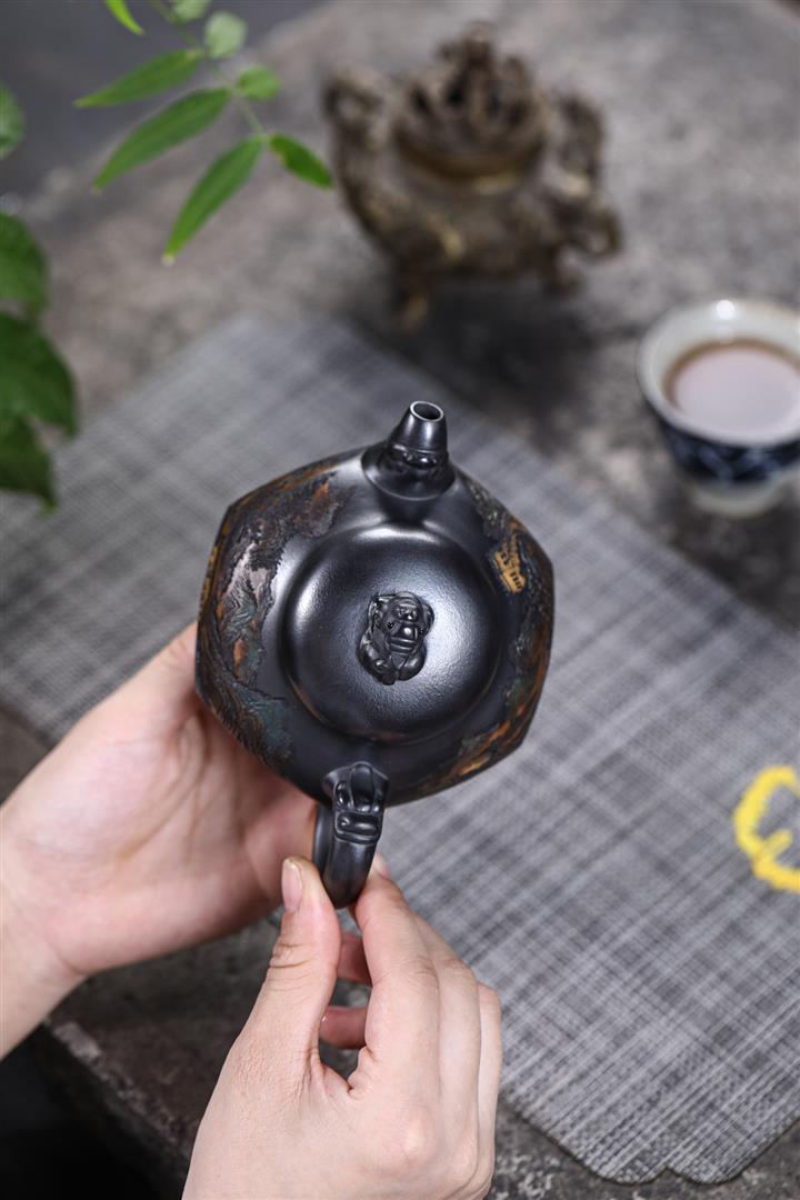 230cc原礦石黃泥彩繪六方潘壺茶壺POT8877
