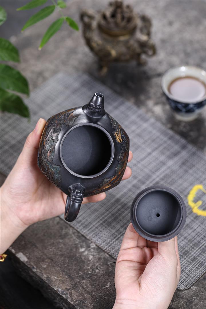原礦百目紫龍血蓮升青雲紫砂壺POT4919
