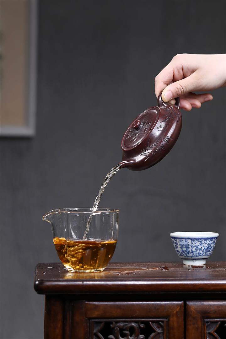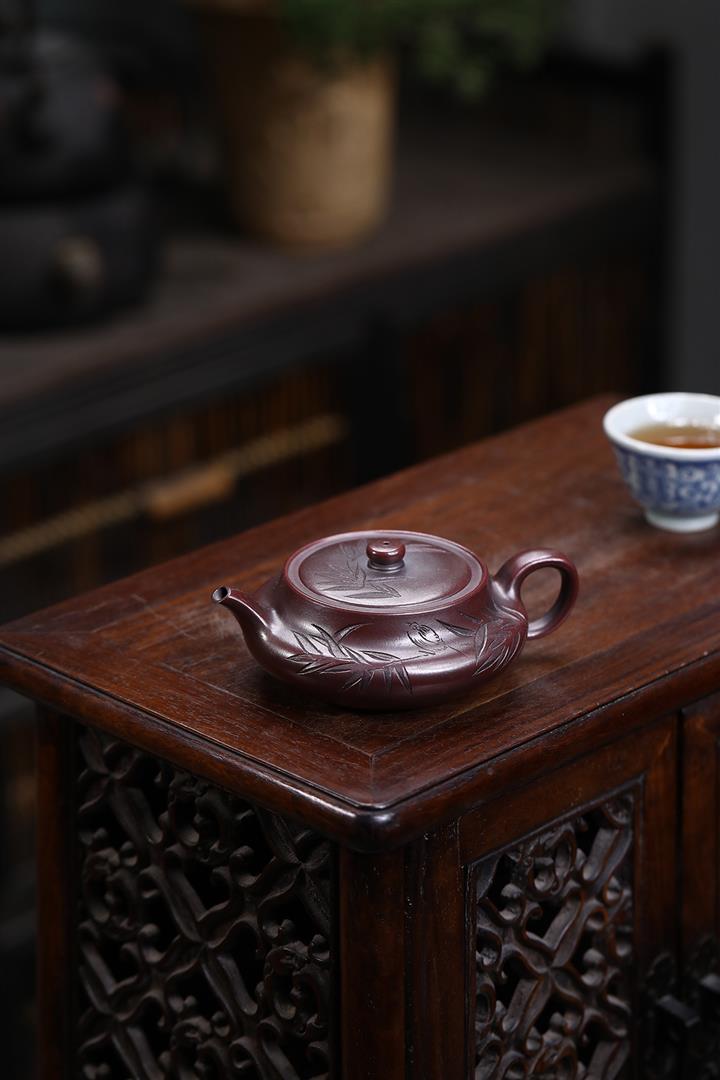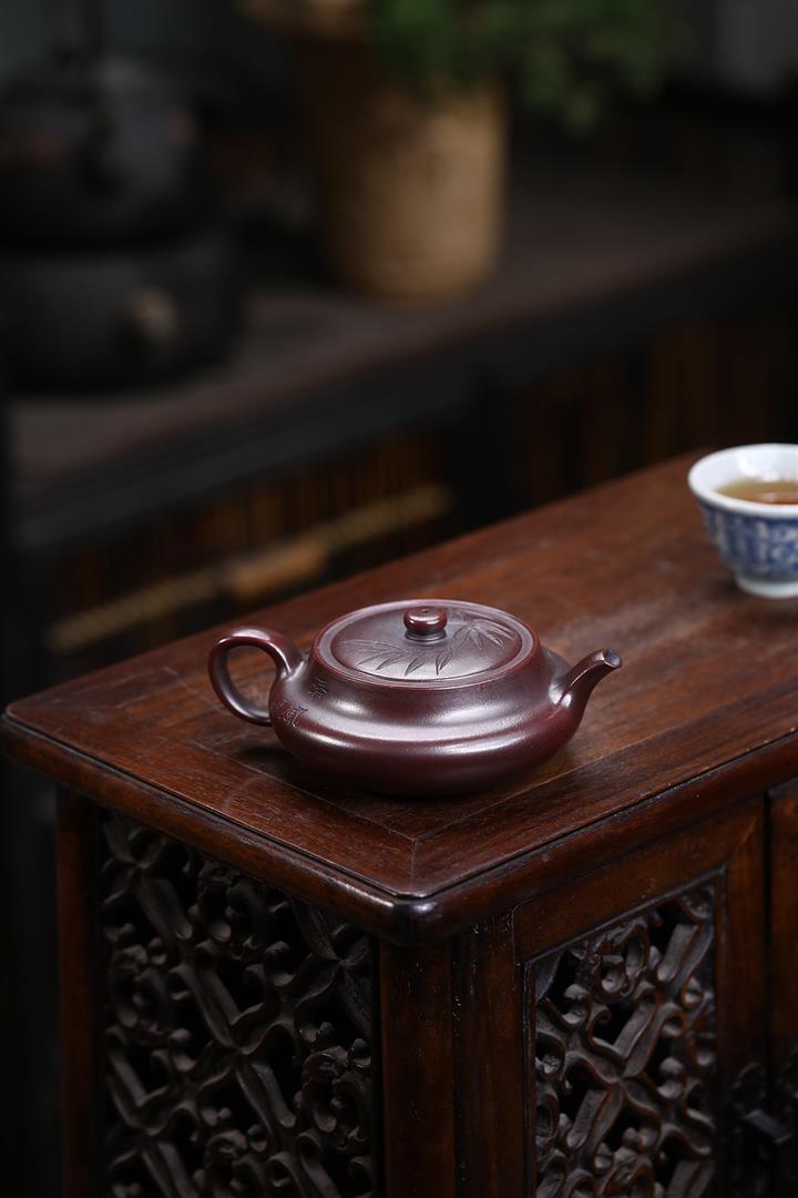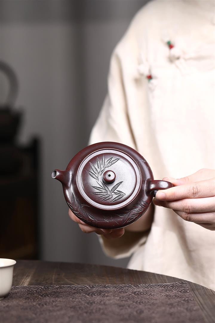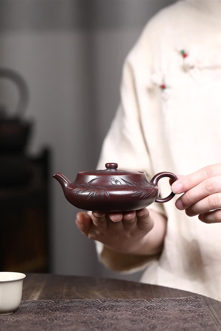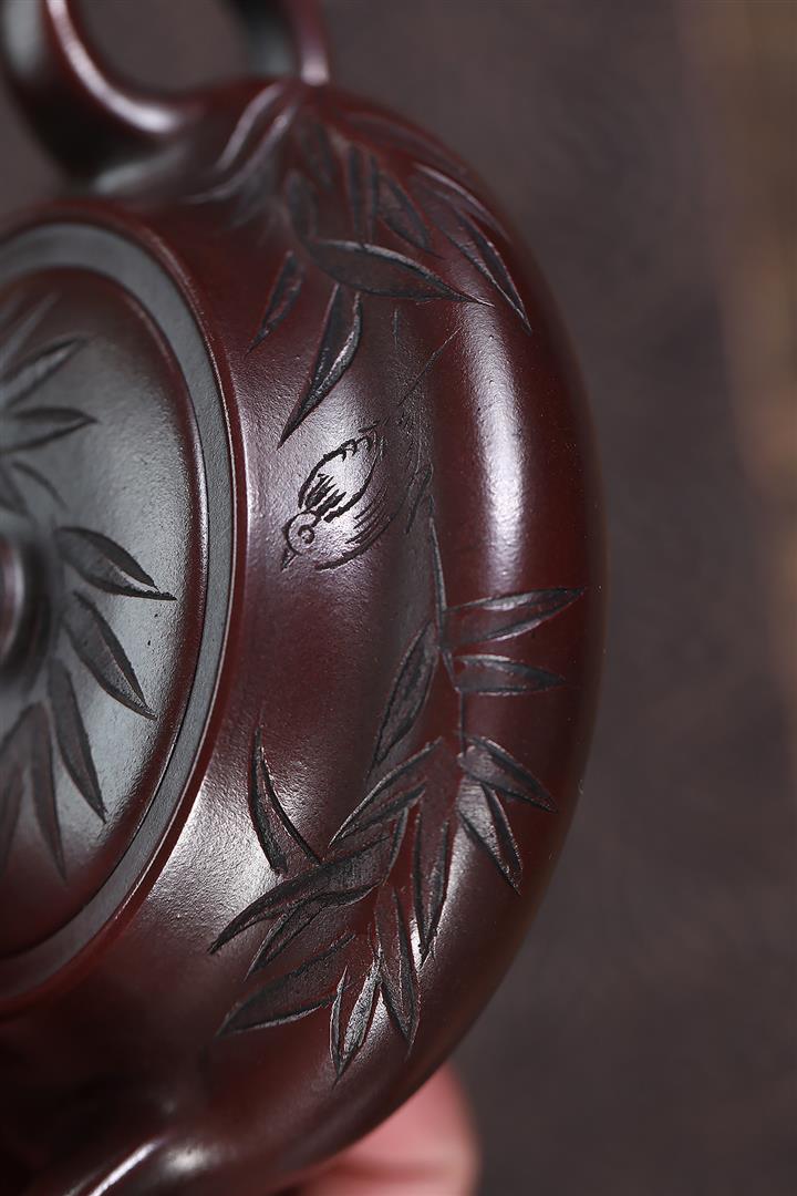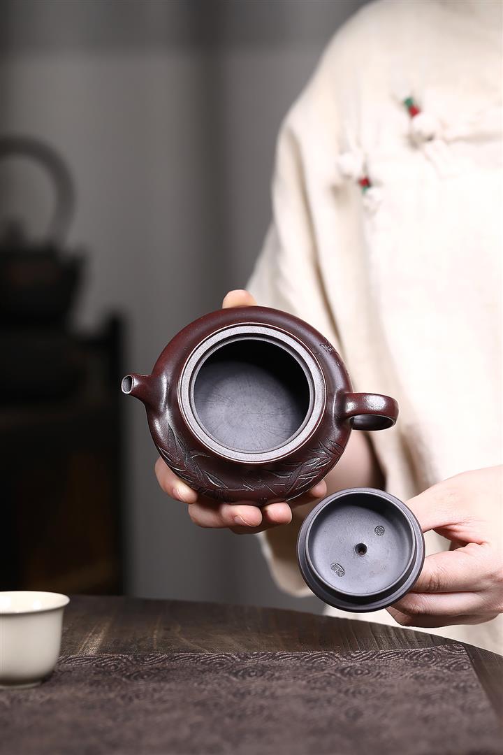 【泥料特點】砂土氣重,似淳實農民,日久使用,漸露鋒芒,養成變化,溫潤莊重。紫砂是壹種雙重氣孔結構的多孔性材質,氣孔微細,密度高。用紫砂壺沏茶,不失原味,且香不渙散,得茶之真香真味。紫砂使用越久,壺身色澤越發光亮照人,氣韻溫雅。紫砂壺長久使用器身會因撫摸擦拭,變得越發溫潤光澤。