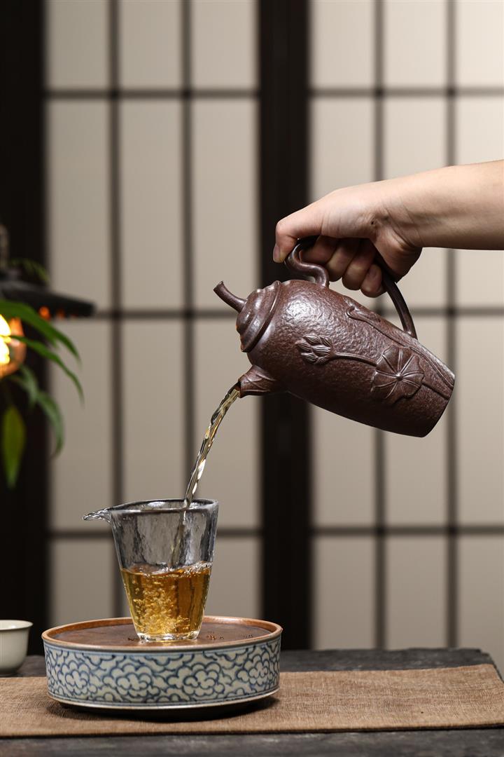 480cc原礦紫泥繪刻荷花汲思茶壺POT8886