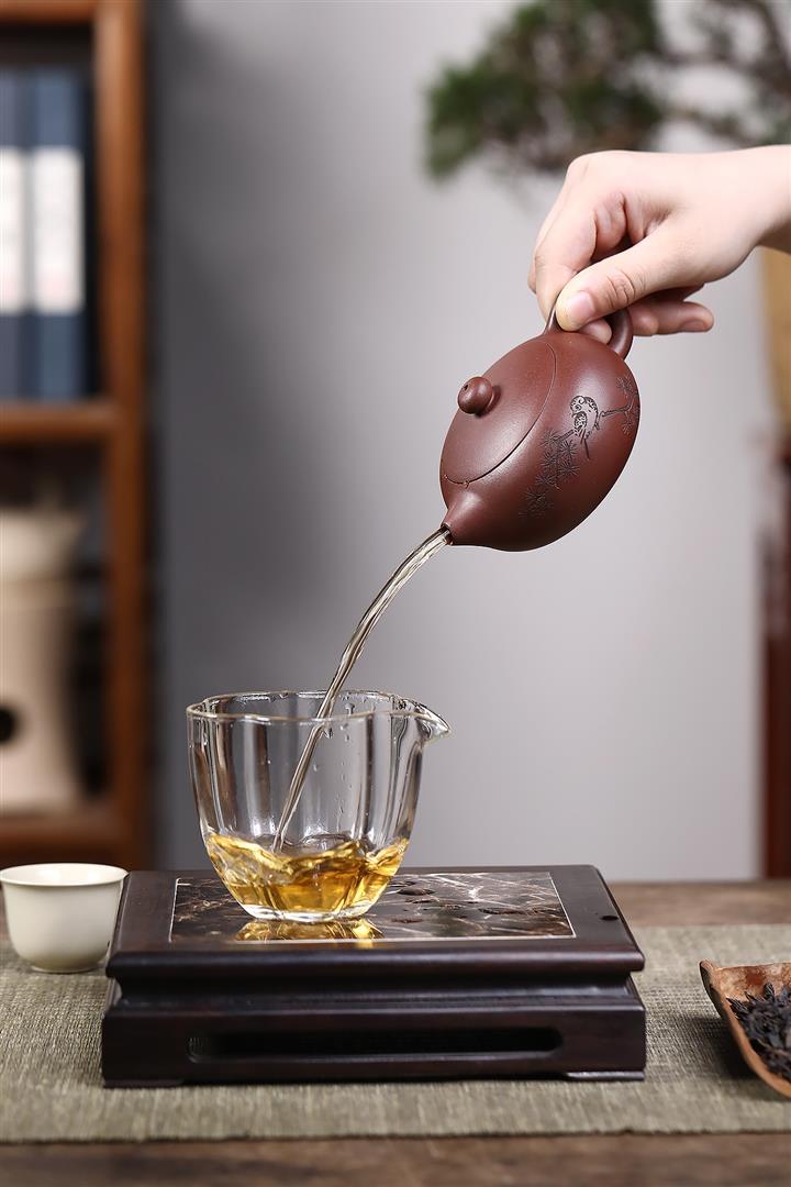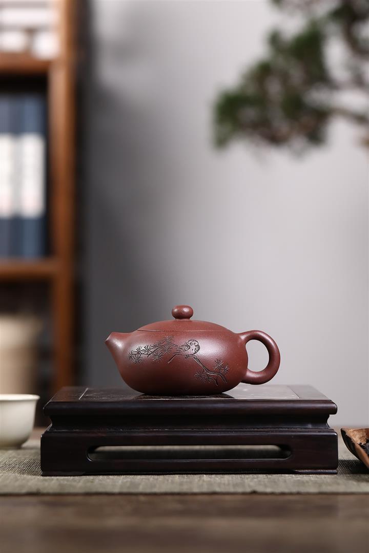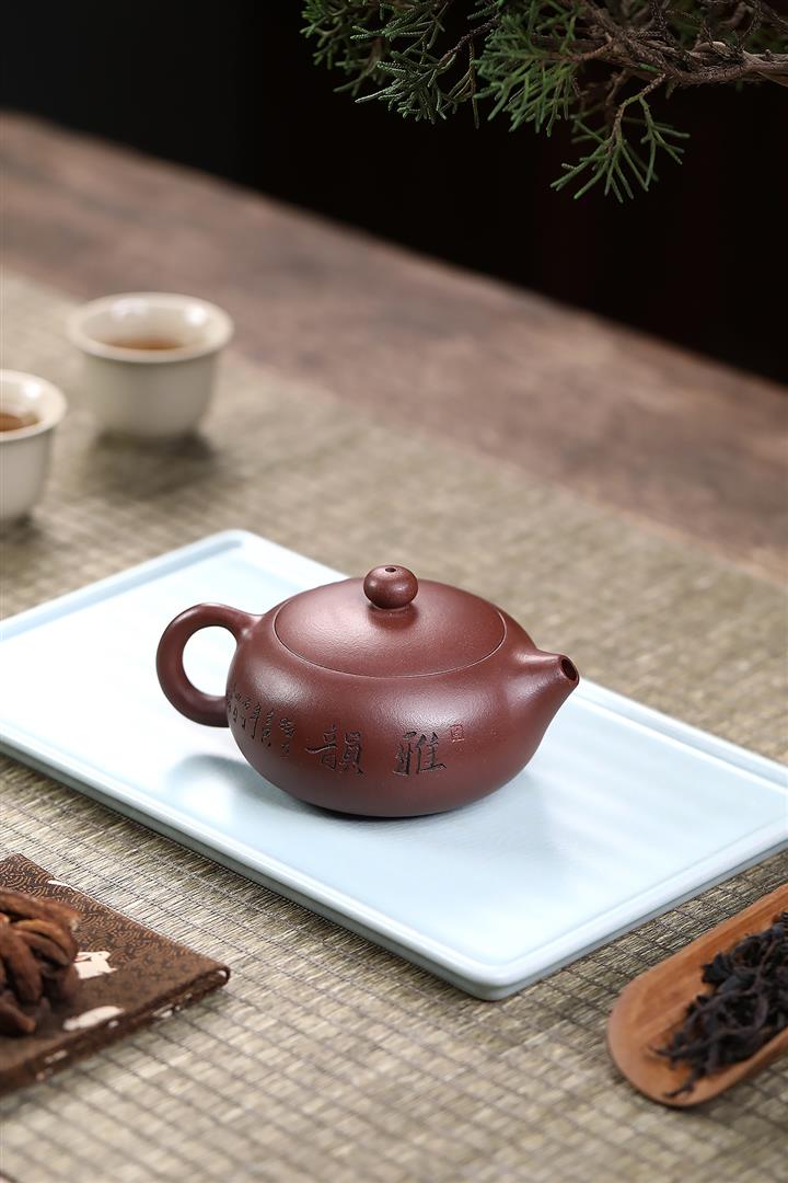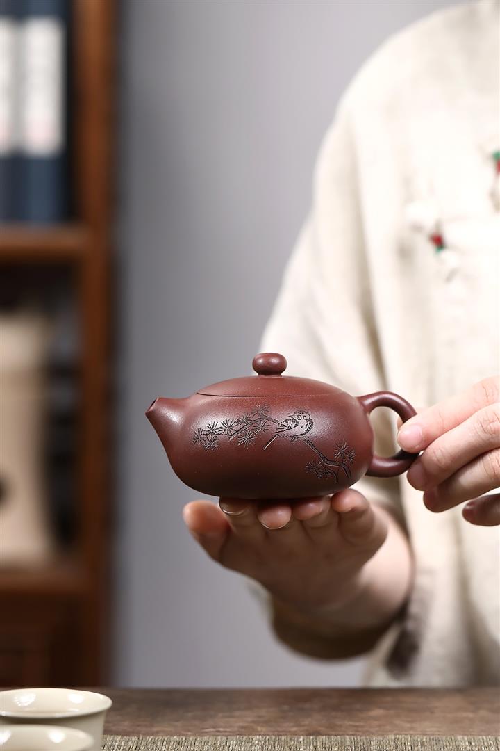 【泥料特點】砂土氣重,似淳實農民,日久使用,漸露鋒芒,養成變化,溫潤莊重。紫砂是壹種雙重氣孔結構的多孔性材質,氣孔微細,密度高。用紫砂壺沏茶,不失原味,且香不渙散,得茶之真香真味。紫砂使用越久,壺身色澤越發光亮照人,氣韻溫雅。紫砂壺長久使用器身會因撫摸擦拭,變得越發溫潤光澤。