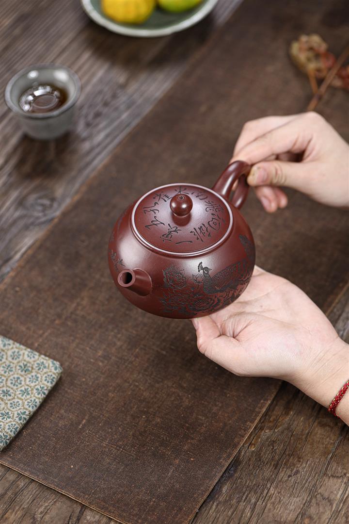 330cc原礦龍血砂孔雀振羽半月茶壺POT8913