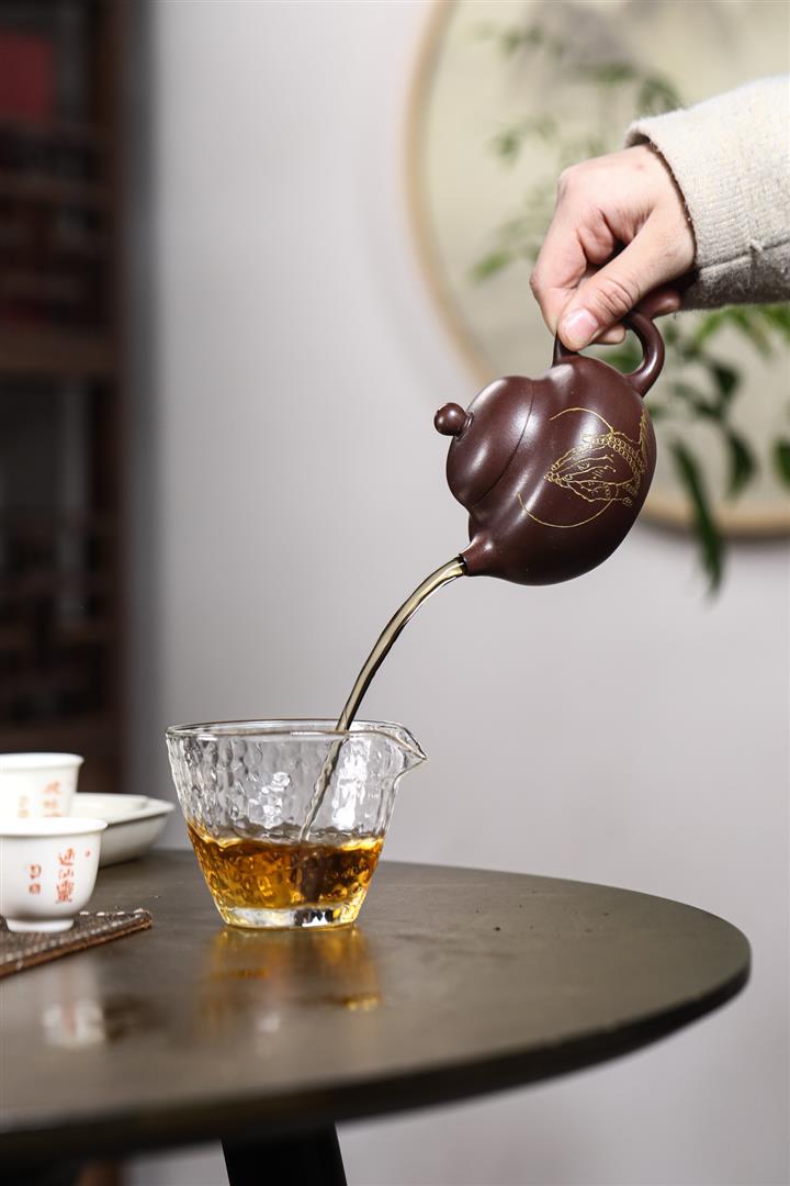 【泥料特點】砂土氣重,似淳實農民,日久使用,漸露鋒芒,養成變化,溫潤莊重。紫砂是壹種雙重氣孔結構的多孔性材質,氣孔微細,密度高。用紫砂壺沏茶,不失原味,且香不渙散,得茶之真香真味。紫砂使用越久,壺身色澤越發光亮照人,氣韻溫雅。紫砂壺長久使用器身會因撫摸擦拭,變得越發溫潤光澤。