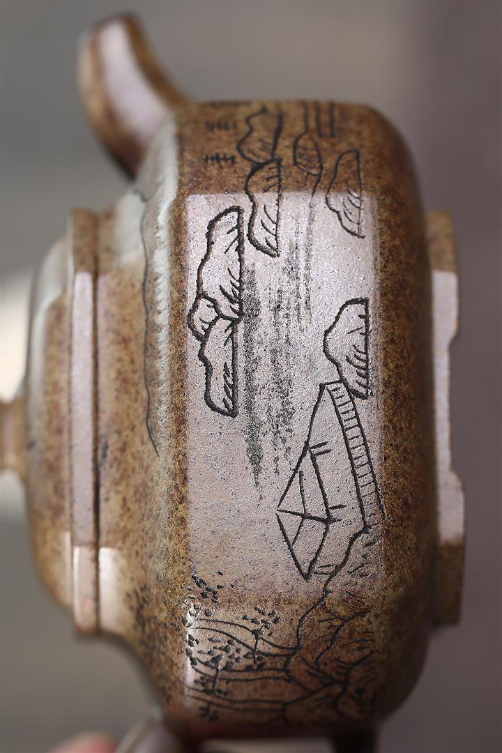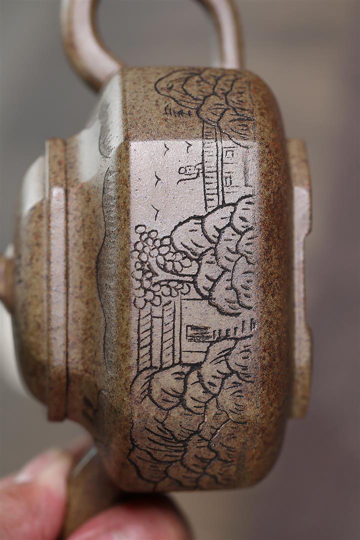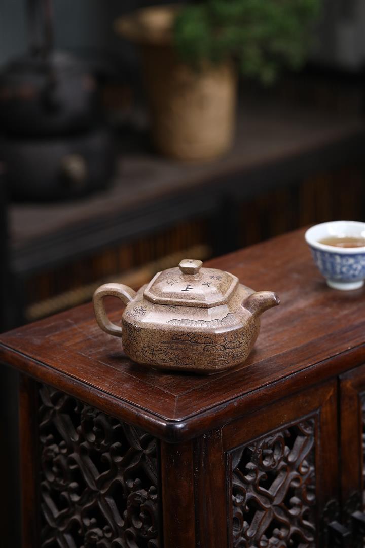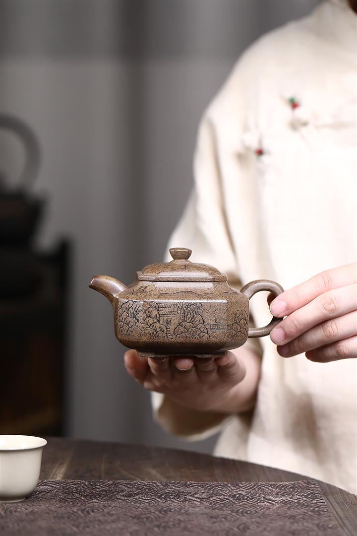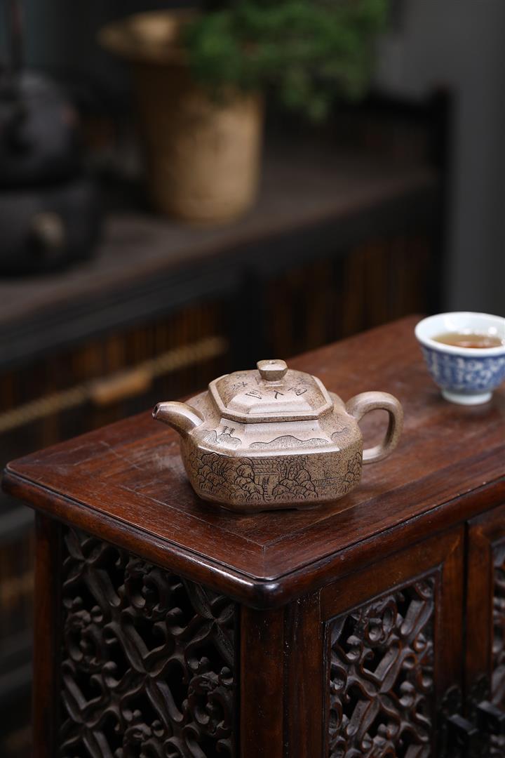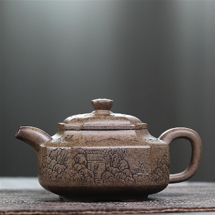 原礦赤龍血砂八方山水竹段茶壺POT7533