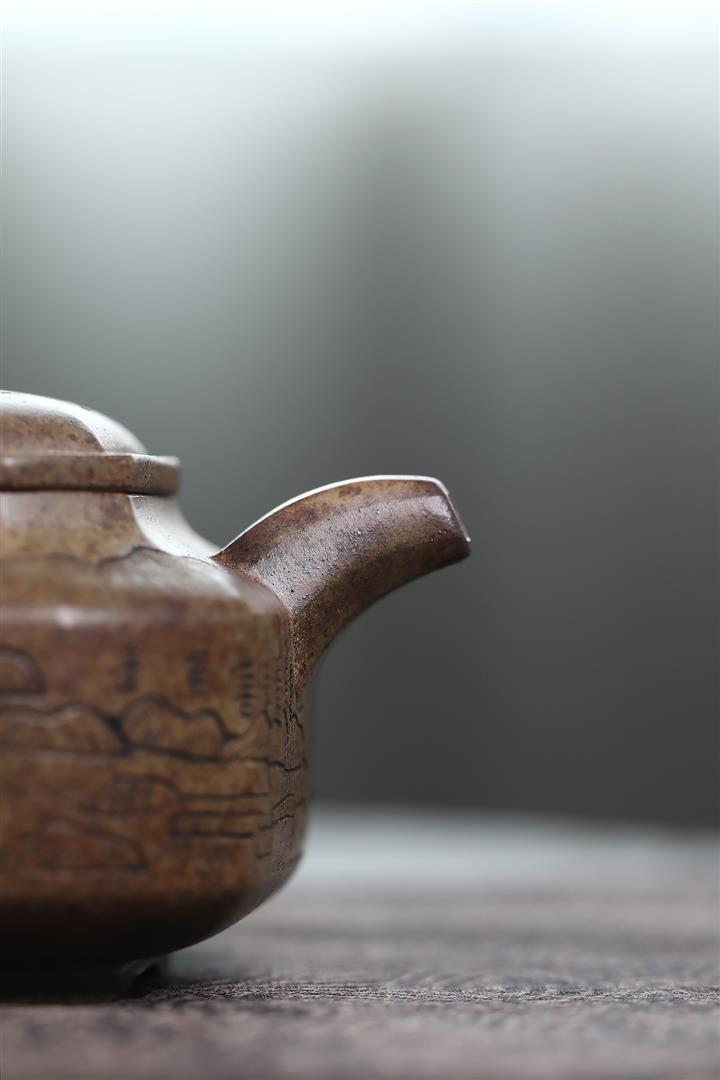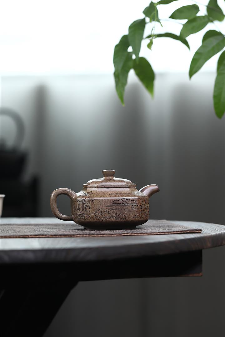 原礦玄鐵石黃覓香苑曲茶壺POT7540