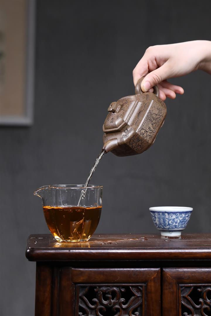 【泥料特點】砂土氣重,似淳實農民,日久使用,漸露鋒芒,養成變化,溫潤莊重。紫砂是壹種雙重氣孔結構的多孔性材質,氣孔微細,密度高。用紫砂壺沏茶,不失原味,且香不渙散,得茶之真香真味。紫砂使用越久,壺身色澤越發光亮照人,氣韻溫雅。紫砂壺長久使用器身會因撫摸擦拭,變得越發溫潤光澤。