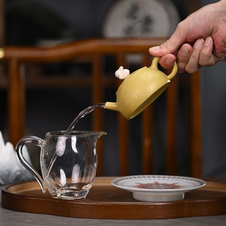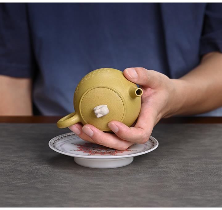 【泥料特點】砂土氣重,似淳實農民,日久使用,漸露鋒芒,養成變化,溫潤莊重。紫砂是壹種雙重氣孔結構的多孔性材質,氣孔微細,密度高。用紫砂壺沏茶,不失原味,且香不渙散,得茶之真香真味。紫砂使用越久,壺身色澤越發光亮照人,氣韻溫雅。紫砂壺長久使用器身會因撫摸擦拭,變得越發溫潤光澤。