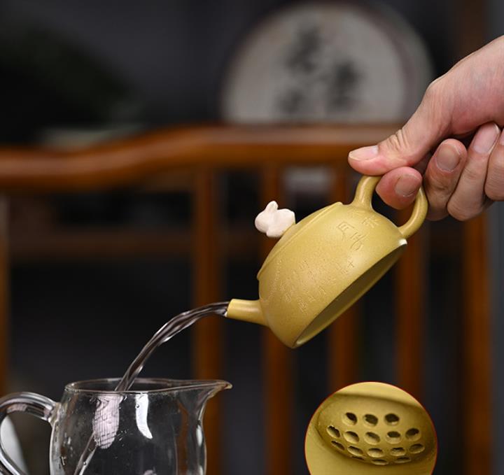 【作品介紹】此款壺形線條流暢,壺把,壺嘴,壺身壹氣呵成栩栩如生,是收藏把玩的好壺,泥料色澤古樸典雅,日久使用,漸露鋒芒,養成變化快,溫潤莊重,用其泡茶,使用的年代久,壺身就溫潤,泡出來的茶湯也就醇郁芳馨。