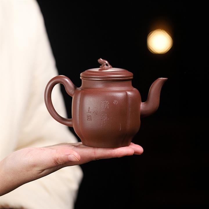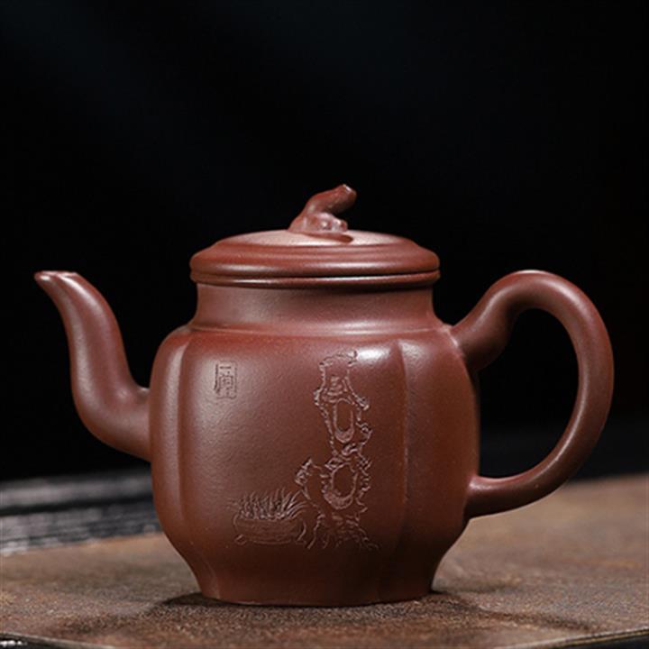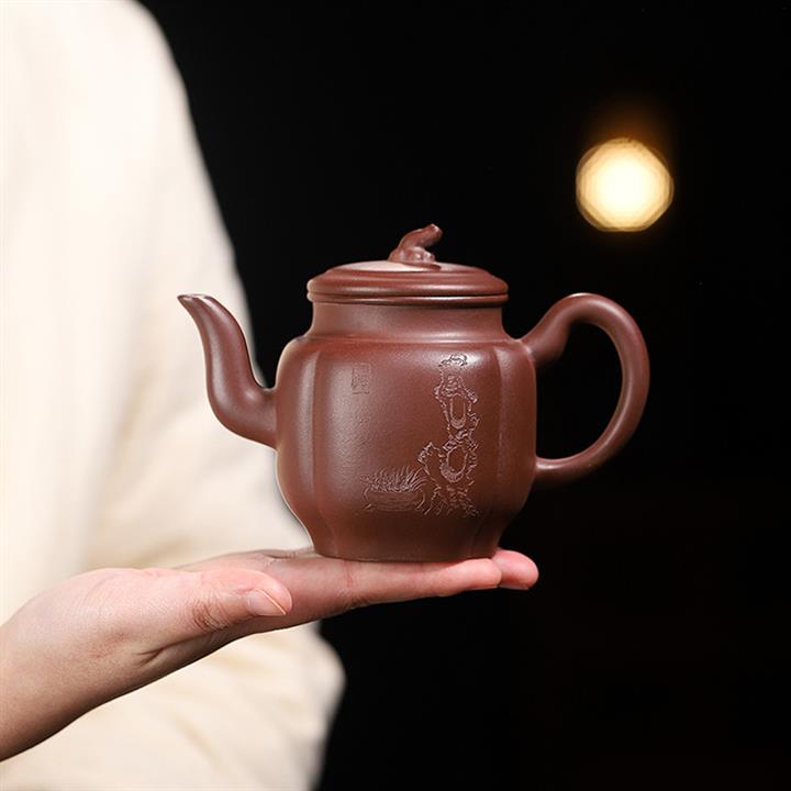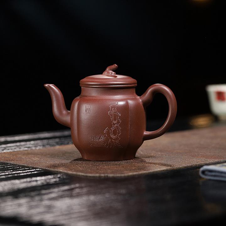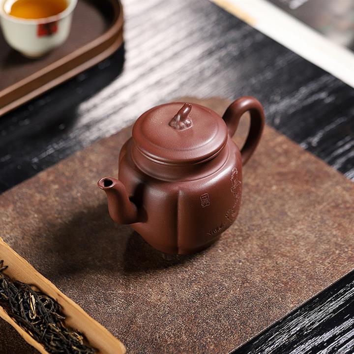 原礦龍骨金砂雙刀刻字炮嘴漢瓦茶壺POT6617