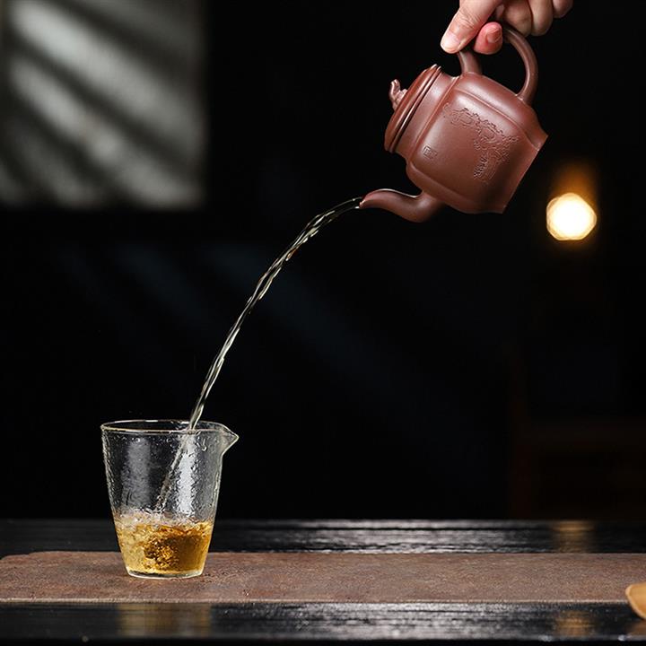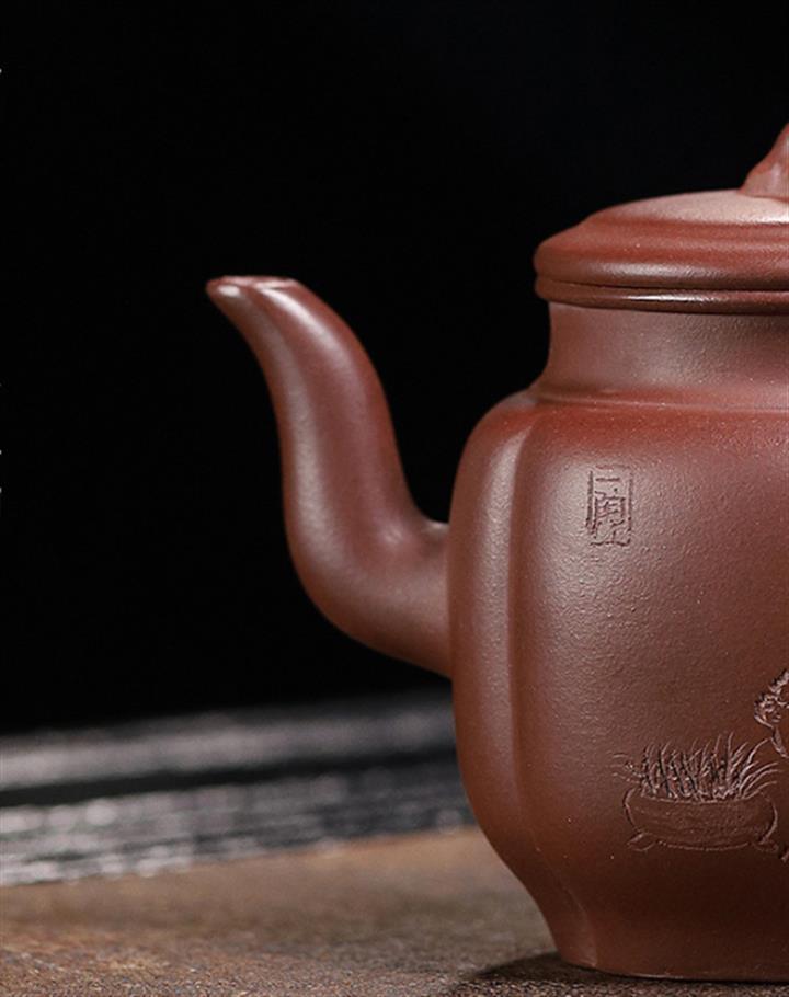 【泥料特點】砂土氣重,似淳實農民,日久使用,漸露鋒芒,養成變化,溫潤莊重。紫砂是壹種雙重氣孔結構的多孔性材質,氣孔微細,密度高。用紫砂壺沏茶,不失原味,且香不渙散,得茶之真香真味。紫砂使用越久,壺身色澤越發光亮照人,氣韻溫雅。紫砂壺長久使用器身會因撫摸擦拭,變得越發溫潤光澤。